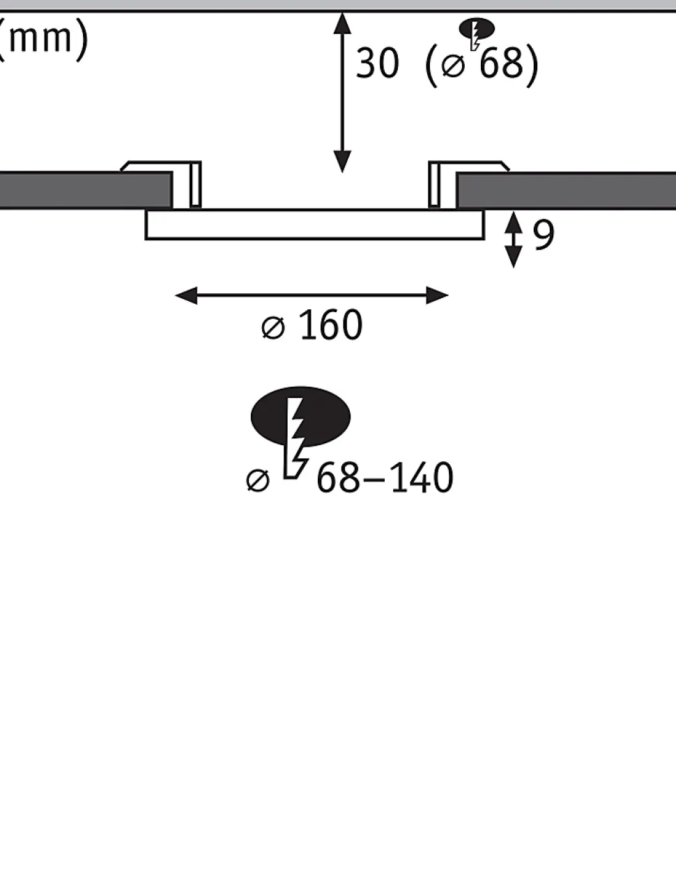 Le panneau encastré de forme ronde Veluna VariFit Edge gradable impressionne par son design moderne et sans cadre dans un Blanc discret. Avec un diamètre de 160 mm et une température de couleur de 4000K, le panneau assure un rendement lumineux élevé et uniforme. Grâce à la technologie VariFit flexible, les ressorts de serrage pour le montage sont réglables en continu entre 68 et 140 mm. Le panneau peut ainsi être encastré dans des trous de perçage déjà présents ou dans de nouveaux trous. Pour un diamètre d’alésage supérieur à 68 mm, une profondeur de cavité d’au moins 30 mm est requise. Le couvercle en plastique satiné crée une fine diffusion de la lumière et une lumière d’un blanc neutre rayonnant et dynamisant, qui est personnalisable grâce à la fonction de gradation.