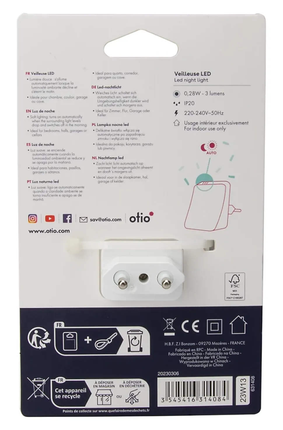 Veilleuse crépusculaire LED intégrée blanc neutre IP20 0,28W l.6xH.6xP.2,8cm Otio