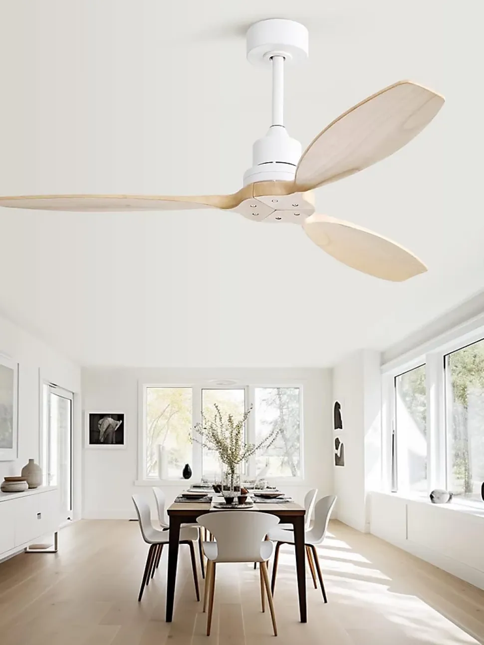 【Circulation d’air efficace】 Le moteur réversible DC permet de régler le ventilateur en mode été (rafraîchissant) ou en mode hiver (maintien de la chaleur), garantissant un confort optimal toute l’année.【Moteur silencieux】 Le moteur DC en acier allié de haute qualité assure une circulation d’air puissante et silencieuse, avec un niveau de bruit inférieur à 35 décibels, créant ainsi une atmosphère calme et agréable dans la pièce.【Télécommande incluse】 Ce ventilateur est livré avec une télécommande pratique permettant de contrôler facilement la vitesse du ventilateur à l’aide d’un simple bouton. Le support mural permet de ranger la télécommande en toute commodité.【Adapté à divers espaces】 Idéal pour les espaces intérieurs de taille moyenne à grande tels que les chambres, salons, salles à manger, bureaux, ainsi que pour les espaces extérieurs comme les patios et vérandas.【Design élégant】 Ce ventilateur de plafond dispose de pales en bois massif au design simple et élégant. Sa finition blanche mate s’adapte facilement à tous les styles de décoration, qu’il s’agisse d’un décor moderne ou plus traditionnel.Dimensions : 132 cm de diamètreMatériau des pales : Bois massif de haute qualitéSource d’alimentation : Moteur DC réversibleVitesse : 6 vitesses réglables via télécommandeType de commande : Télécommande avec support muralFonctionnement : Moteur réversible pour modes été et hiverCertification : Conforme aux normes de sécuritéRecommandé pour des pièces de 20 à 35 m²