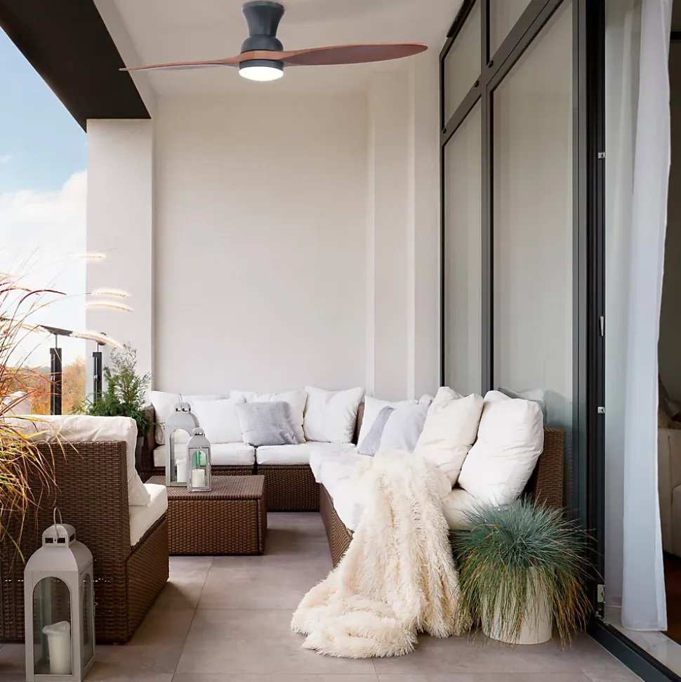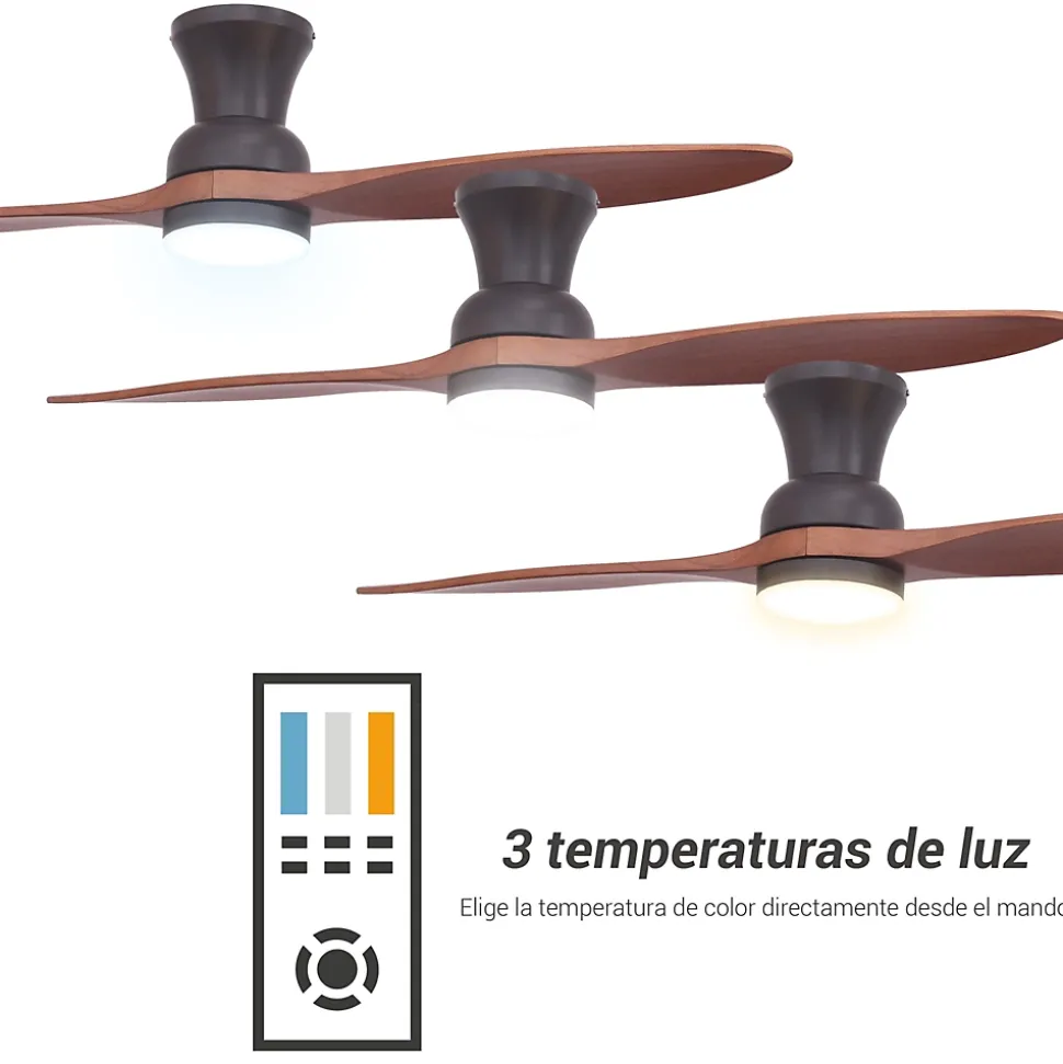 Avec un style industriel, DUPLO rappelle les pales d’un avion dans une belle couleur brune. Il convient aux environnements intérieurs et extérieurs de taille moyenne. Sa lumière est réglable en température et en intensité et son moteur DC 2.0 est plus résistant, efficace et silencieux. Il dispose d’une fonction été-hiver et d’une minuterie.
