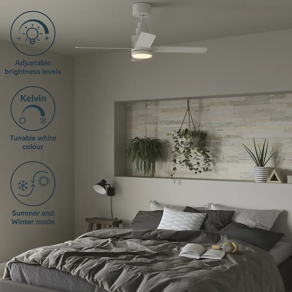 Ventilateur de plafond Burbank LED intégrée IP20 2200lm L.106xH.42cm blanc GoodHome