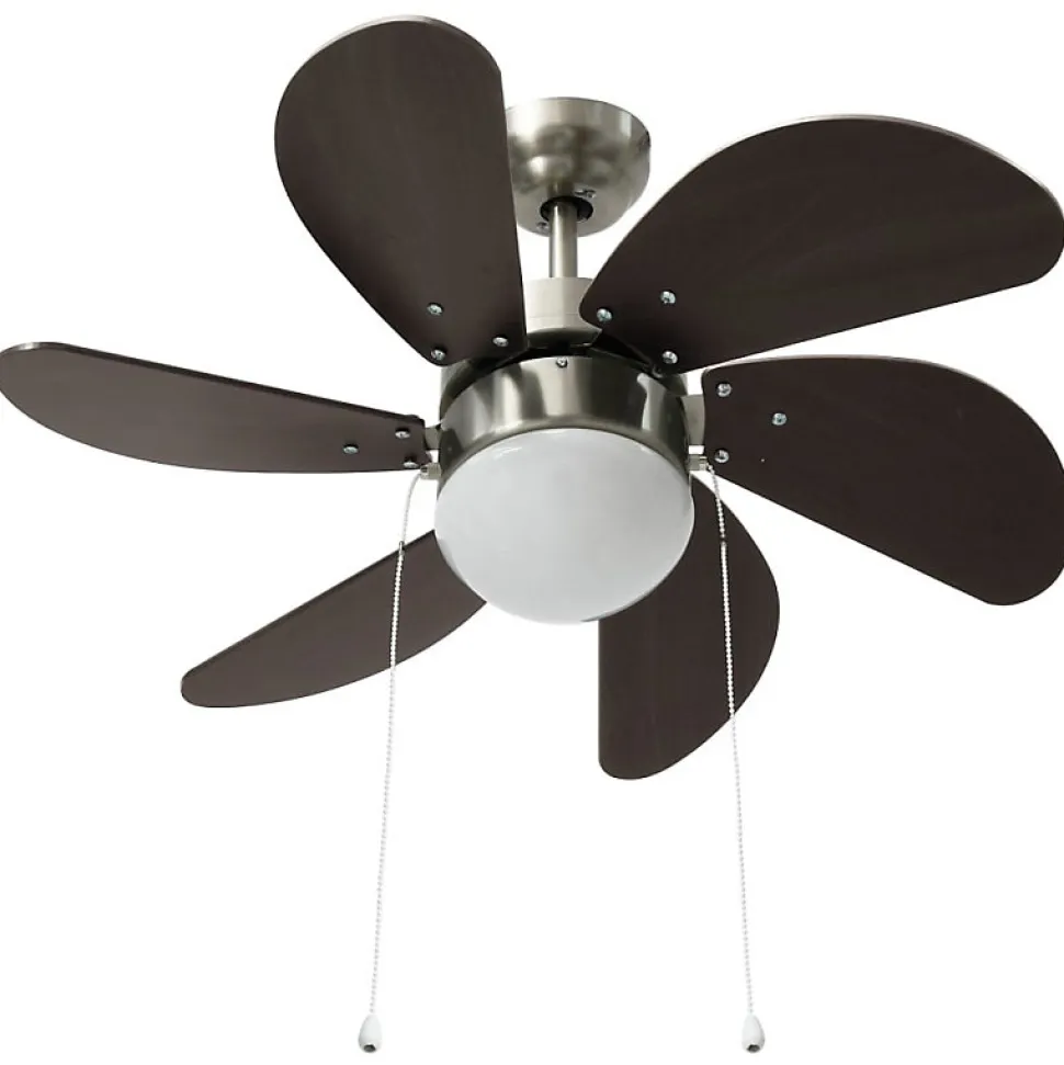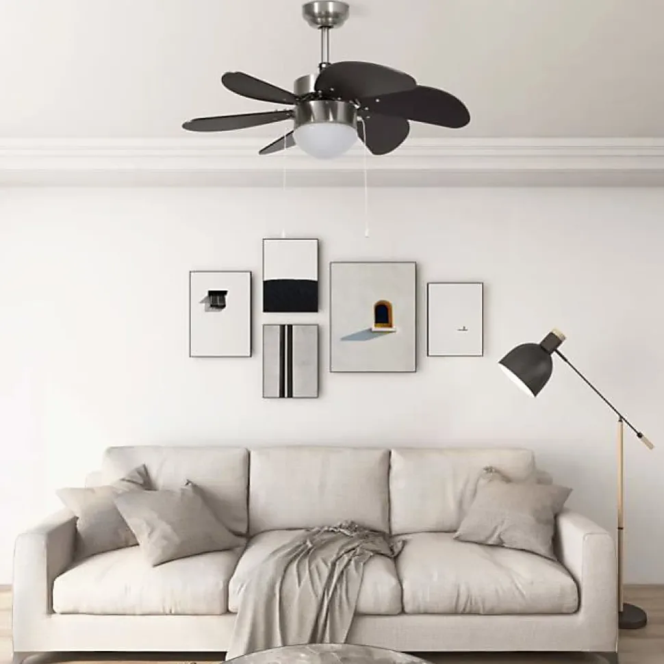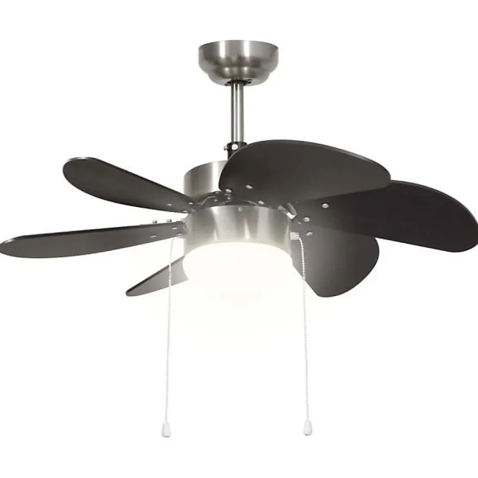Rafraîchissez votre intérieur avec ce ventilateur de plafond avec lampe de couleur marron foncé. Fabriqué en chrome et MDF, il est robuste et durable. Il dispose de 3 niveaux de vitesse et d’une lampe intégrée pour illuminer votre pièce. Dimensions : 76 x 43 cm (Diamètre x H). Puissance électrique : 39 W. Ampoule non incluse.