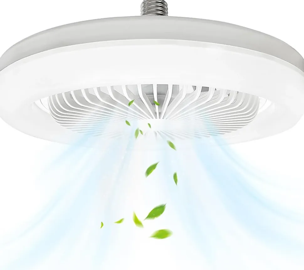 Ventilateur à Douille 2 en 1 avec Lumière: Ce ventilateur de plafond combine ventilation et éclairage LED en un seul appareil, parfait pour les espaces intérieurs tels que le salon, la chambre à coucher, la chambre d’enfant, le café, et plus encore.Source Lumineuse LED Intelligente: Équipé d’une nouvelle source lumineuse à lentille LED, avec un abat-jour acrylique de protection des yeux et une température de couleur de 6500K. La lumière LED intégrée de 25W offre une lumière douce sans éblouissement ni scintillement pour protéger vos yeux.3 Modes de Fonctionnement: Ce ventilateur de plafond moderne de 10 pouces avec lumière offre 3 modes de fonctionnement contrôlés par un interrupteur mural. Allumez la lumière, démarrez le ventilateur, ou utilisez les deux simultanément en appuyant simplement sur le bouton.Moteur DC Silencieux: Doté d’un moteur silencieux en cuivre et d’une conception de lame de ventilateur cachée pour éviter tout contact accidentel. Offre un mouvement doux et silencieux pour un repos optimal et une meilleure qualité de sommeil.Facile à Installer: Conception E27 à visser, compatible avec les bases E27 standard. Aucun câblage compliqué requis, installation et démontage faciles. Profitez rapidement d’une lumière vive et d’une brise fraîche sans tracas d’installation.