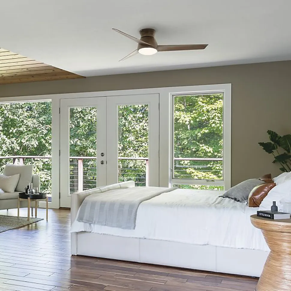 Conçu pour s’intégrer parfaitement contre le plafond tout en assurant une généreuse circulation d’air, Eris marie performance et style. Utilisable à l’intérieur comme à l’extérieur – son design épuré, sa certification d’étanchéité et sa sortie lumineuse dimmable de 1 500 lumens offrent une lumière ambiante dans une variété d’espaces de rassemblement, notamment les patios ou terrasses en plein air. Garantie: moteur et pièces liées au moteur: 10 ans ; Eclairage Led et composants éléctriques: 5 ans ; Autres pièces: 2 ans. Vitesse de rotaton 127 / 55 tours / minute.