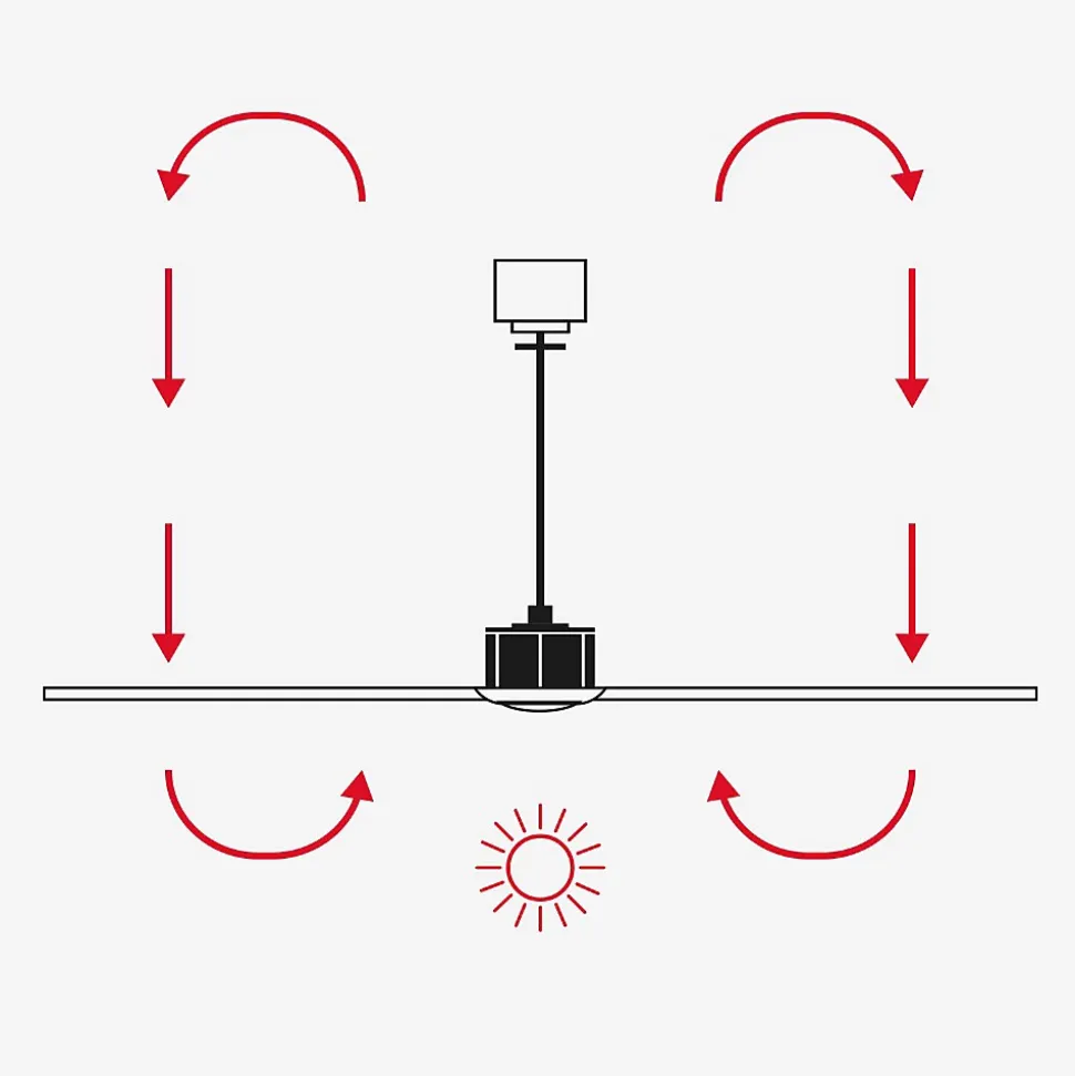 Le ventilateur de plafond design Lantau L de Faro Barcelona est conçu pour garantir un confort thermique optimal et une luminosité efficace toute l’année. Son cadre noir, ses pales effet bois et ses lignes minimalistes en font le choix idéal pour les espaces contemporains de 17,6 à 28 m², tels que les salons, les chambres, les bureaux ou les espaces d’accueil.Au cœur de ce ventilateur se trouve un moteur CC à 6 vitesses, assurant un fonctionnement ultra-silencieux et une consommation d’énergie réduite jusqu’à 70 % par rapport aux moteurs CA. Le débit d’air est réglable sur six niveaux, avec un débit maximal de 5 221 CFM (environ 147 m³/min), s’adaptant ainsi à tous les climats.Le ventilateur se contrôle à l’aide de la télécommande fournie.Parmi ses fonctionnalités avancées, on retrouve une fonction réversible, utile pour optimiser le chauffage en hiver en faisant circuler l’air chaud stratifié. De plus, ce ventilateur est compatible avec les plafonds inclinés jusqu’à 12°. * Moteur CC à 6 vitesses (ultra-silencieux et écoénergétique)* Fonction été/hiver (rotation inversée)* Télécommande incluse* Pales en pin* Débit d’air maximal : 5 221 CFM (147 m³/min)* Convient aux pièces de 17,6 à 28 m²* Compatible avec les plafonds inclinés (jusqu’à 12°)* Installation au plafond | Diamètre de la tige : 132 mm* Indice de protection : IP20 | Classe : ILe Lantau L allie à la perfection design moderne, technologie intelligente et confort visuel et climatique, offrant une solution polyvalente pour tous les espaces résidentiels et commerciaux