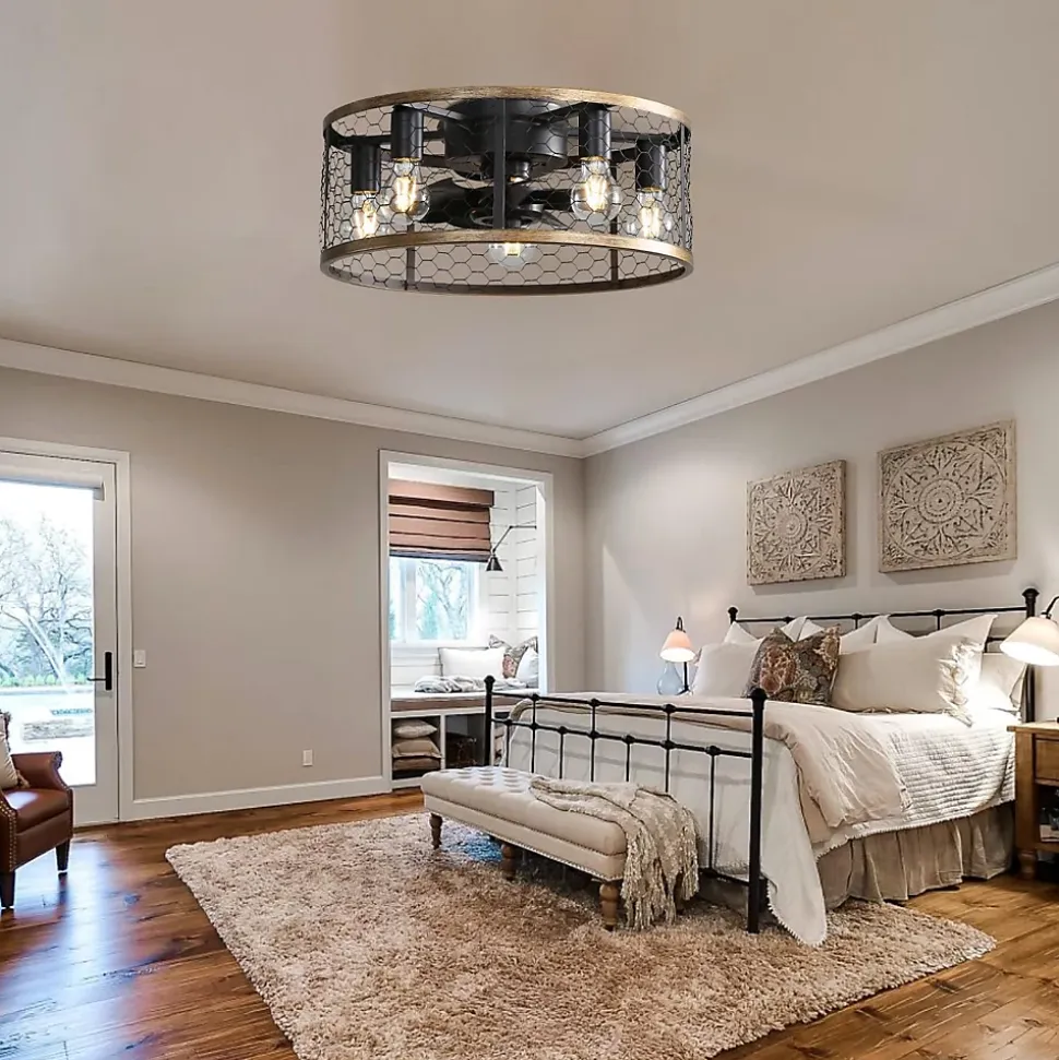 【Mouvement d’air efficace】 Moteur DC réversible pour un flux d’air puissant et silencieux, garantissant un confort agréable en été comme en hiver.【Moteur silencieux】 Moteur cuivre à faible bruit, moins de 35 dB, offrant une ventilation puissante et une efficacité énergétique. Profitez d’un environnement calme et frais tout au long de l’année.【Télécommande incluse】 Contrôlez facilement votre ventilateur avec une télécommande incluant 6 vitesses réglables, une fonction avant et arrière, ainsi qu’une minuterie pour un confort optimal selon vos besoins.【Design à cage industriel】 Un design à cage rétro avec un cercle en métal tordu et une finition bois, parfait pour les espaces à plafond bas. Ce ventilateur apporte une touche élégante et vintage à n’importe quel intérieur.【Polyvalent】 Ce ventilateur noir peut être installé dans diverses pièces, telles que les chambres, salons, cuisines, sous-sols, ou même les espaces extérieurs, répondant à une grande variété de besoins.Dimensions : Ventilateur de 50 cm avec 7 pales, idéal pour des pièces jusqu’à 25 m² (chambre, salon, cuisine, bureau, loft, balcon).Moteur : Moteur à courant continu (DC) réversible, offrant un fonctionnement silencieux et une efficacité énergétique exceptionnelle, parfait pour une utilisation toute l’année.Source lumineuse : Ce ventilateur est équipé de lumière LED, idéale pour compléter l’ambiance rétro ou industrielle de votre intérieur.Fonctionnalités : Télécommande avec 6 vitesses réglables, options avant et arrière, et minuterie pour un confort sur mesure à tout moment de la journée.Design : Design à cage avec cercle métallique tordu et finition bois, ajoutant une touche de raffinement et de style industriel à votre intérieur ou extérieur.