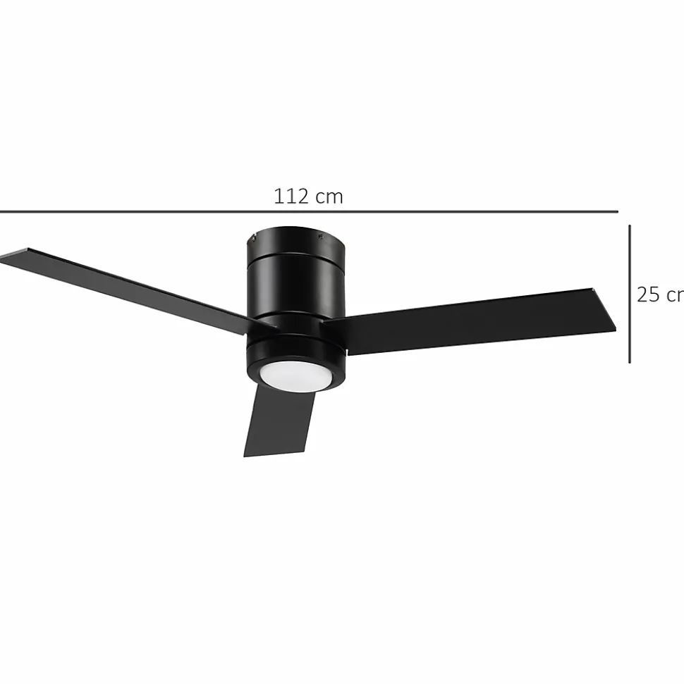 Modernisez votre intérieur avec ce ventilateur de plafond HOMCOM et sa lumière LED. Avec des pales en MDF, il combine élégance et fonctionnalité grâce à ses trois vitesses, une lumière LED de 50000 heures et une télécommande pour un ajustement aisé depuis votre lit ou canapé.Caractéristiques :- 2 en 1 : ventilateur de plafond avec lumière LED- Ventilateur de plafond silencieux avec 3 vitesses (élevée, moyenne et basse)- Lumière LED blanche de 4000K avec une durée de vie d’environ 50000 heures et ventilateur silencieux (45 dB)- Ventilateur de plafond avec une fonction de minuteur de 1/2/4 heures pour programmer la durée de fonctionnement- Fabriqué avec des pales en MDF- Télécommande longue portée avec technologie moderne par radiofréquence- Ce ventilateur de plafond avec lampe intégrée convient au salon, chambre à coucher, salle à manger, vestibule, couloir, etc.- Tous les accessoires nécessaires pour l’installation sont inclus- Montage nécessaireSpécifications :- 2 coloris au choix : blanc, effet bois ou noir- Matériau : métal, MDF et verre- Dimensions totales : Ø 112 x 25H cm- Dimensions d’une seule pale : 53L x 12,4l cm- Longueur du câble d’alimentation : 30 cm- Portée de la télécommande : 10 m- Adapté pour : 2,6-3 m (hauteur du plafond), 16 m² (espace)- Niveau de bruit : 45 dB- Tension : 230 V / 50 Hz- Puissance : 48 W- Batteries : pile 23A/12V (non incluse)- Certifications : CE (EMC, ROHS, LVD, ERP et RED)- Réf. : B31-390V00WT/390BK