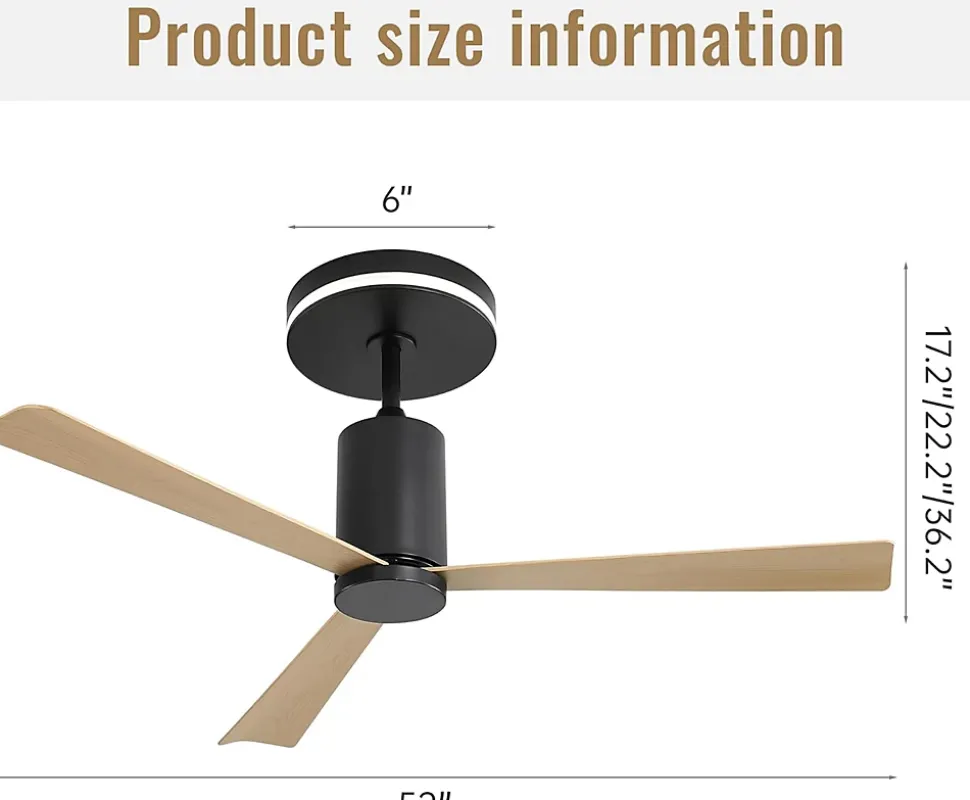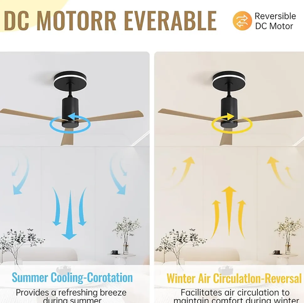 Moteur DC silencieux】 Le moteur DC de ce ventilateur assure une efficacité énergétique 75 % supérieure à celle des moteurs AC traditionnels. Il fonctionne à un niveau sonore très bas de 35 dB, offrant une ambiance calme et agréable.【Lumière LED réglable】 Ce ventilateur est équipé d’un kit LED intégré de 18W avec trois températures de couleur ajustables : blanc froid (6000K), lumière naturelle (4000K), et blanc chaud (3000K), pour s’adapter à toutes les ambiances.【Pales ABS durables】 Ce ventilateur de plafond moderne de 132 cm est équipé de 3 pales en ABS de haute qualité, offrant à la fois une durabilité et un style élégant. Idéal pour diverses pièces comme les salons, chambres, cuisines, et terrasses couvertes.【Contrôle facile】 Grâce à la télécommande incluse, vous pouvez ajuster la vitesse du ventilateur (6 niveaux) et les paramètres d’éclairage avec une simple pression sur un bouton. Des options de minuterie (2/4 heures) sont également disponibles.【Écoénergétique et réversible】 Le moteur réversible permet d’utiliser le ventilateur en mode été pour rafraîchir ou en mode hiver pour maintenir la chaleur, tout en économisant de l’énergie.Dimensions : Pales de 132 cm, idéal pour des pièces de 15 à 30 m²Matériau des pales : ABSSource d’alimentation : Moteur DC réversibleSource lumineuse : Kit LED 18W avec trois températures de couleur réglables (6000K/4000K/3000K)Contrôle : Télécommande incluse avec options de minuterie (2/4 heures)Certification : Conforme aux normes de sécuritéType de contrôle : Télécommande avec réglage facile de la vitesse et de la lumière