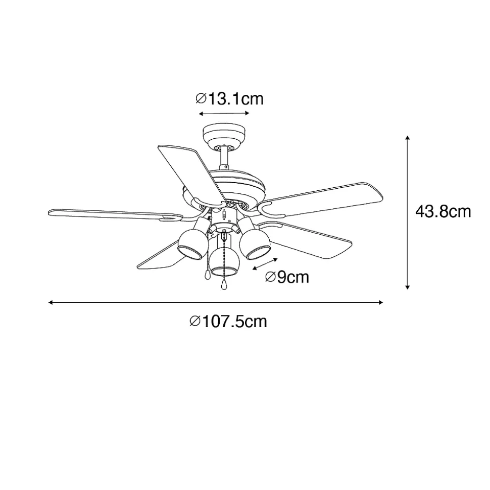 Le Mistral est un ventilateur de plafond vraiment cool ! Il s’intègre parfaitement dans un intérieur industriel. La lampe est en acier et de couleur noire. Grâce à ses 3 points lumineux, le Mistral attire immédiatement le regard ! Son diamètre est de 107,5 cm et sa hauteur de 43,8 cm. N’oubliez pas de commander des ampoules à culot E14 pour compléter la lampe. Le Mistral est compatible avec un variateur externe, ce qui vous permet de régler facilement l’ambiance. Les pales sont réversibles, vous pouvez donc choisir entre une finition noire ou bois. Ce ventilateur de plafond dispose à la fois d’un réglage été et d’un réglage hiver. En mode été, le ventilateur tourne dans le sens inverse des aiguilles d’une montre pour fournir un rafraîchissement. En mode hiver, il tourne dans le sens des aiguilles d’une montre pour faire descendre l’air chaud et rendre le chauffage plus efficace. L’interrupteur à tirette vous permet de régler la vitesse et d’allumer et d’éteindre la lampe.