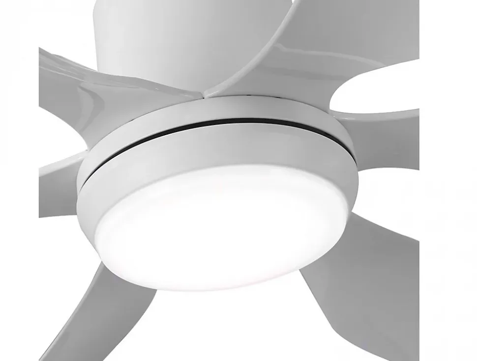 - Ventilateur de plafond connecté, usage via une application domotique possible (par exemple Tuya Smart), compatible iOS et Android