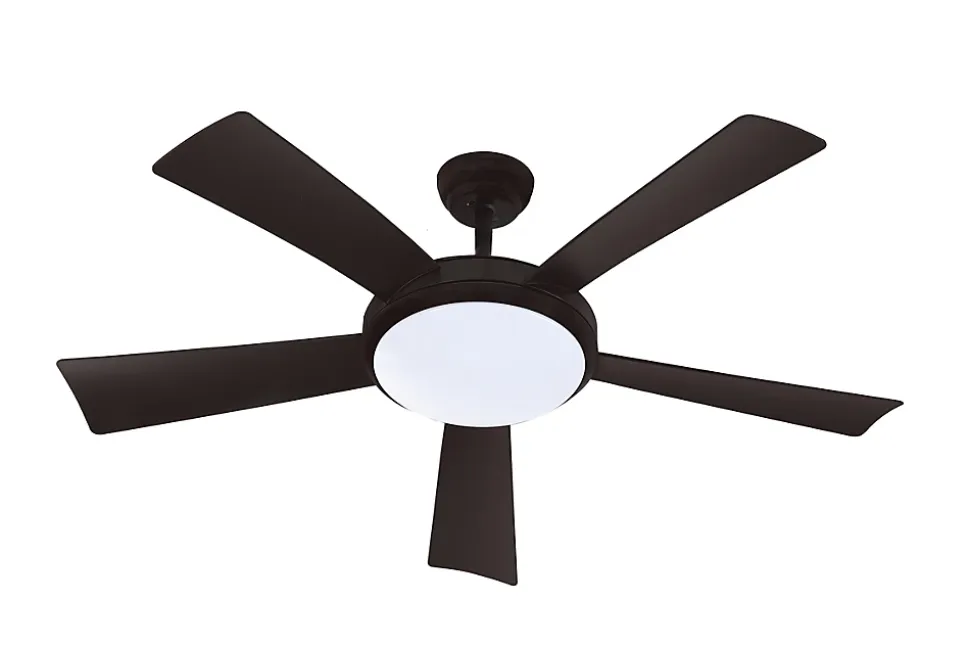 Ventilateur de plafond diamètre 132cm, puissance 38W, 9+2 vitesses, plateau d’éclairage LED 1760Lm 18W avec réglage de la couleur lumineuse (2200K : jaune – 4000K : naturel – 6500K : blanc) et de l’intensité de lumière, 5 pales plastique noires, bloc moteur et cabochon en métal noir. Télécommande founie (piles non incluses). Rotation réversible pour une bonne circulation de l’air en été comme en hiver. En été l’air froid est ventilé vers le bas pour une sensation de fraîcheur, et en hiver, l’air chaud accumulé au plafond est ventilé vers le bas pour optimiser son installation de chauffage : poêle à bois ou granulé, cheminée / insert, chauffage central, ou électrique. S’installe très simplement en lieu et place du luminaire de plafond de la pièce à équiper et commandable avec l’interrupteur du luminaire de plafond remplacé. Apairage de la télécommande réalisé en usine donc fonctionne instantanément dès l’installation. La télécommande permet de régler, à distance, la vitesse de rotation, la teinte et l’intensité lumineuse, la temporisation (2/4/6/8H), d’allumer ou éteindre individuellement le ventilateur et/ou l’éclairage LED.