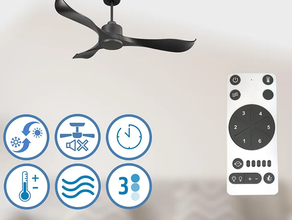 Ventilateur de plafond Réversible Thermostat Wifi Moteur à courant continu Toits en pente Télécommande Adaptateur 2/3 Lames Hyper