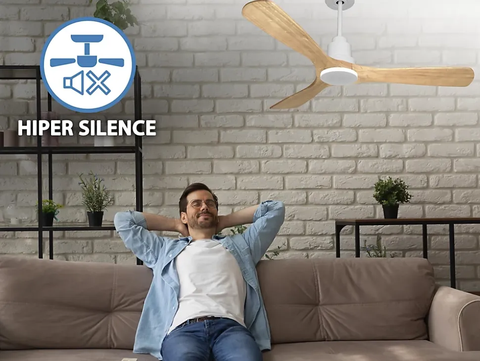 Ventilateur de plafond Réversible Thermostat Wifi Moteur à courant continu Toits en pente Télécommande Hypersilence Mémoire