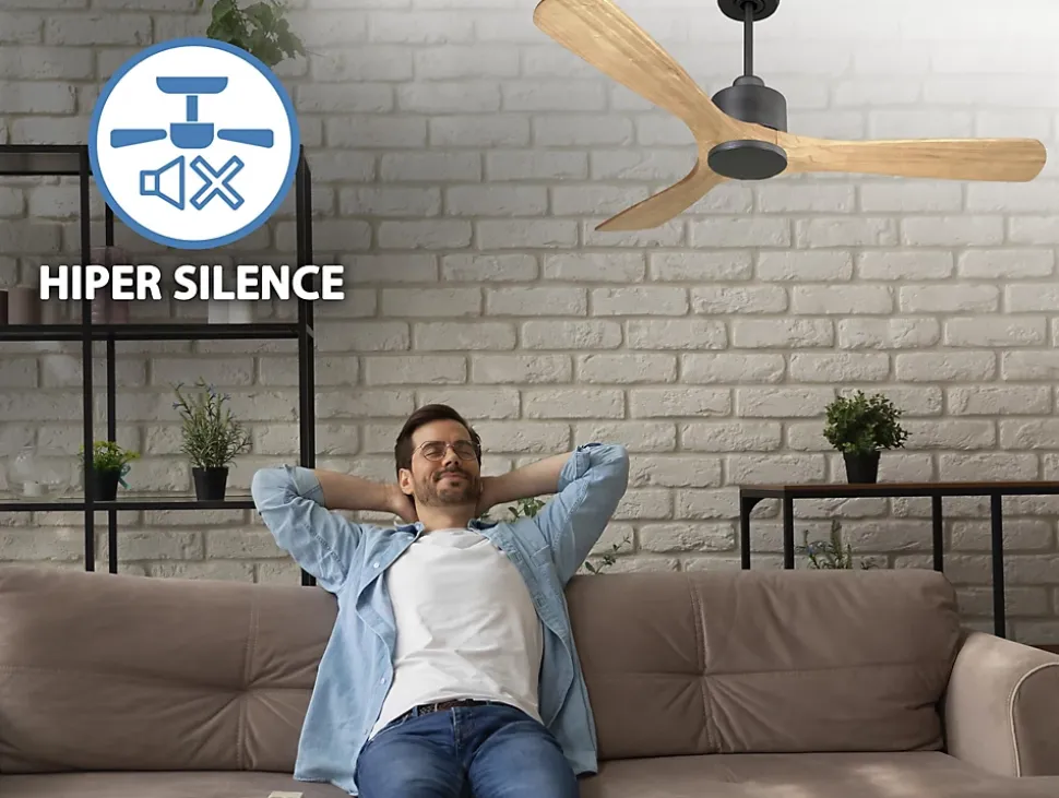 Ventilateur de plafond Réversible Thermostat Wifi Moteur à courant continu Toits en pente Télécommande Hypersilence Mémoire