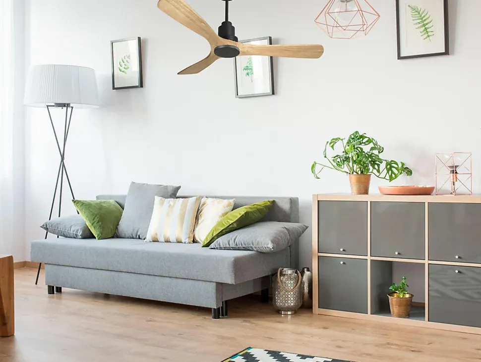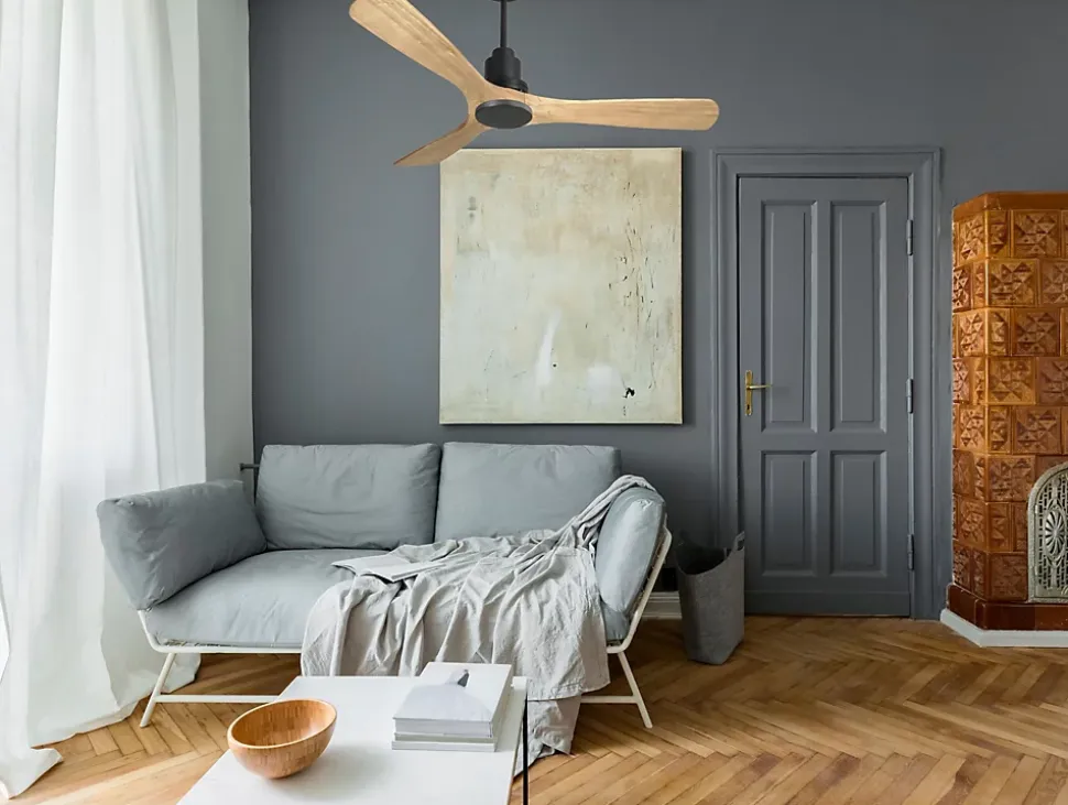 Ventilateur de plafond Réversible Thermostat Wifi Moteur à courant continu Toits en pente Télécommande Hypersilence Mémoire Shopi