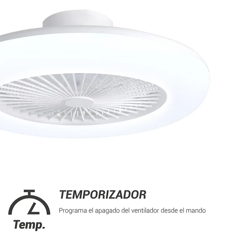 Luminaire haute puissance avec ventilateur intégréCe luminaire de grande puissance intègre un ventilateur performant. Il est possible de sélectionner à la fois la température de couleur et l’intensité lumineuse, ce qui permet de l’adapter à tout moment de la journée et à n’importe quelle pièce. À l’intérieur, il abrite un ventilateur puissant, capable de ventiler efficacement une pièce de taille moyenne.