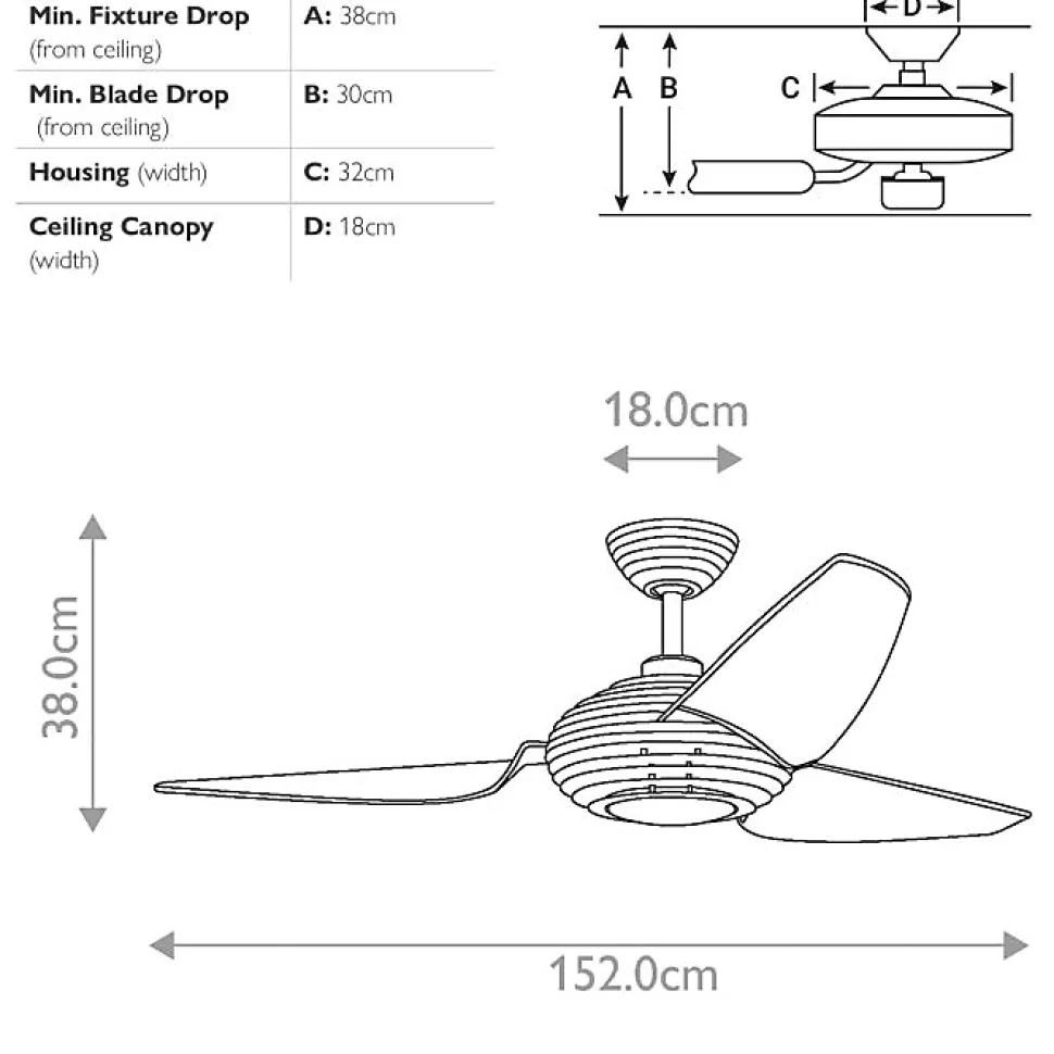 Ce ventilateur de plafond de 60 pouces en acier inoxydable brossé, issu de la collection Voya, associe des textures lisses et des matériaux dans une harmonie haute technologie. Inspiré par le design moderne des avions, son apparence offre une brise douce avec une allure entièrement aérodynamique. Garantie: moteur et pièces liées au moteur: 10 ans ; Eclairage Led et composants éléctriques: 5 ans ; Autres pièces: 2 ans. Vitesse de rotaton 129 / 49 tours / minute.