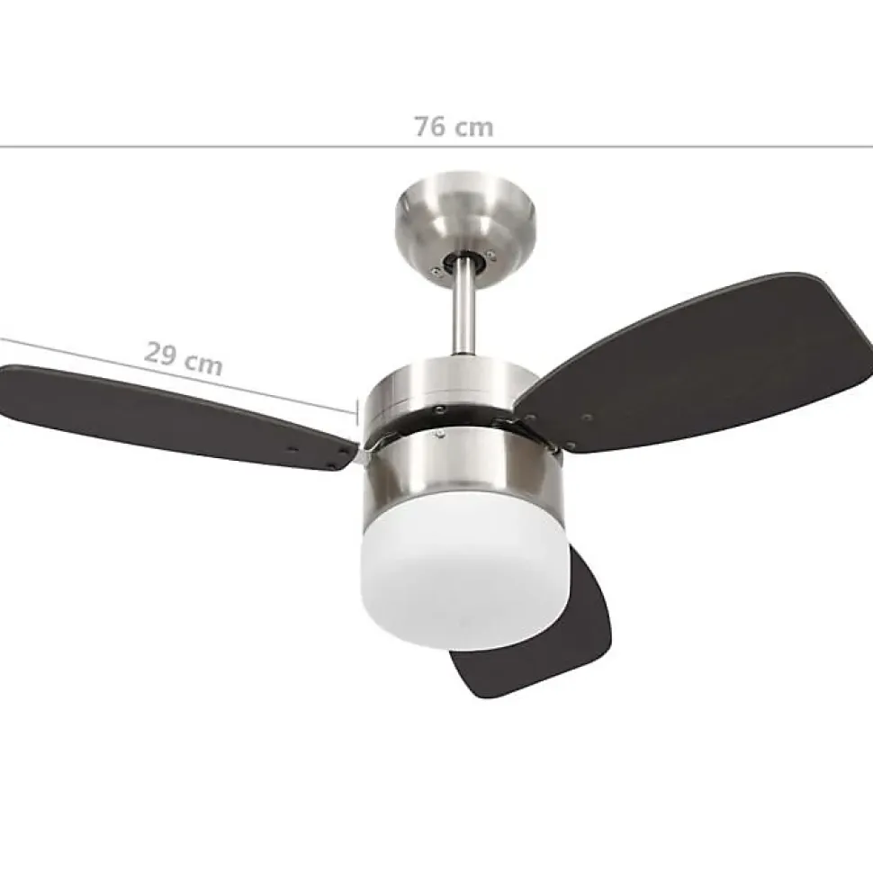 Que vous cherchiez un moyen de vous rafraîchir ou d’illuminer votre intérieur, ce ventilateur de plafond marron foncé combine robustesse et fonctionnalité. Fabriqué en chrome et MDF, il dispose d’une lampe intégrée et d’une télécommande pour un contrôle simple. Avec 3 vitesses réglables et une fonction minuterie, il s’adapte à vos besoins. Dimensions : 76 cm de diamètre x 41,5 cm de hauteur. Puissance totale de 39 W, avec éclairage LED 15 W ajustable selon la température de couleur (2700 à 6500 K).