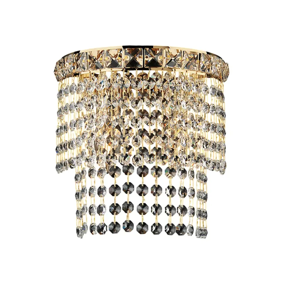 Wagner – Applique en fer et laiton doré avec strass, 2 lumièresMesures du produit : H.23 – L.14 – P.21Nombre d’ampoules : 2xE14Puissance : 42 watts maximumFinition : Or poliCe produit est fabriqué artisanalement. De légères imperfections visuelles sont considérées comme des caractéristiques naturelles du travail manuel