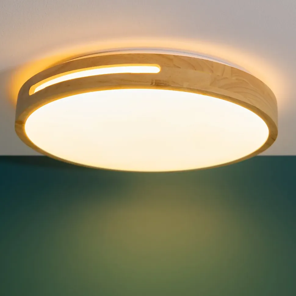 Le plafonnier WOODBURY se distingue par sa combinaison réussie de design et de fonctionnalité. Il s’intègre parfaitement dans le salon ou dans un bureau. Le design naturel est créé grâce à l’utilisation du matériau bois. Le bois utilisé provient de forêts gérées durablement et est certifié Forest Stewardship Council. Cette certification garantit que les forêts certifiées respectent des critères environnements, sociaux et économiques. L’origine du matériau peut être suivie de la forêt jusqu’à la livraison. Une grande importance est accordée à la protection de l’environnement, à la préservation de la biodiversité et à des conditions de travail sûres. Économique en énergie et durable, ce luminaire utilise la technologie LED. Avec 2100 lumens, le plafonnier WOODBURY est suffisamment lumineux pour éclairer à lui seul des pièces de taille moyenne. Dimmable en 3 niveaux à l’aide d’un simple interrupteur mural. Les ampoules sont incluses. Tout le matériel de montage nécessaire est déjà inclus dans l’emballage.