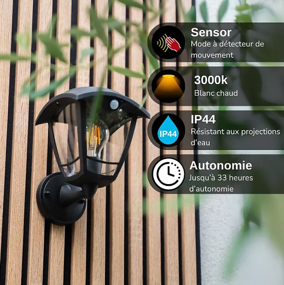 Xanlite – Applique murale solaire rétro LED IP44, 400 lumens, détecteur de mouvement, avec ampoule, Noir – SO2011AR
