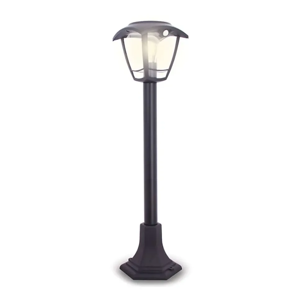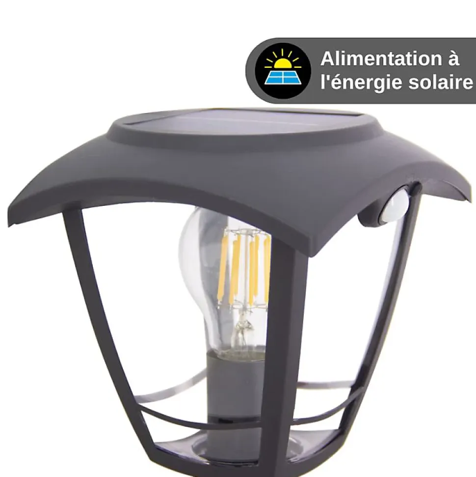 Xanlite – Borne solaire rétro LED IP44, 400 lumens, détecteur de mouvement, avec ampoule, Noir – SO2011R