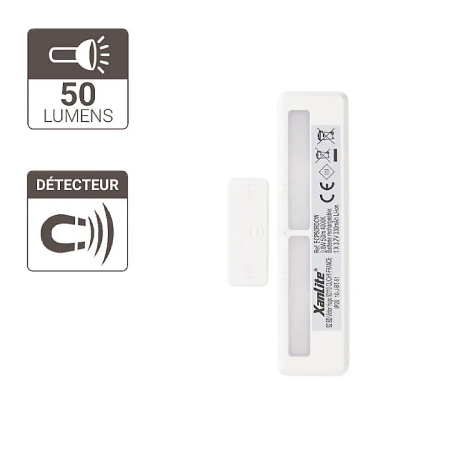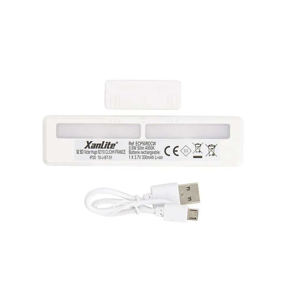 Xanlite – Éclairage de placard et tiroir – Rechargeable USB – Détecteur magnétique – 50 lumens – Blanc neutre – ECP50RDCW