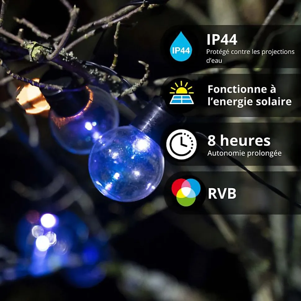 Xanlite – Guirlande Solaire Guinguette 5m IP44 – 8 Ampoules – RVB – GRL5GUINRVB
