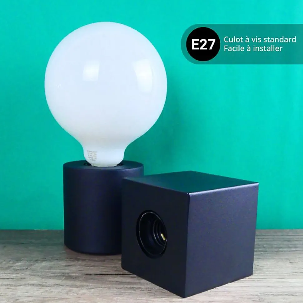 Xanlite – Lampe à poser cylindrique en métal noir , compatible culot E27, IP20, 60W puissance max – XDLAPCYCLOMN