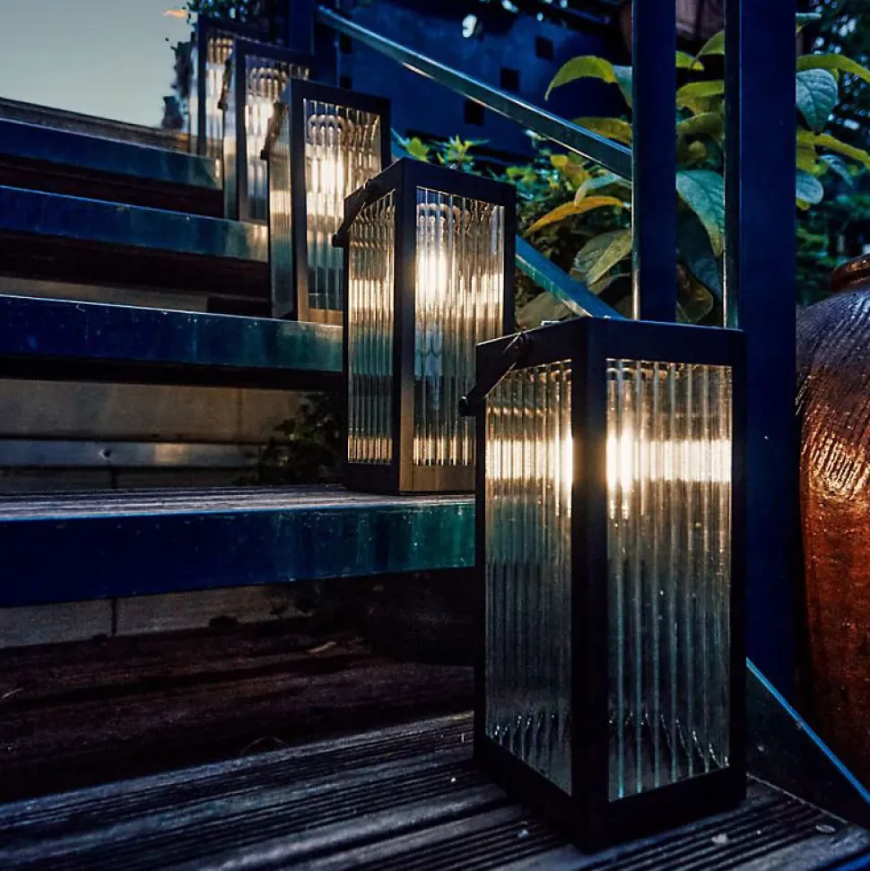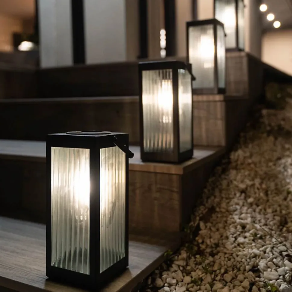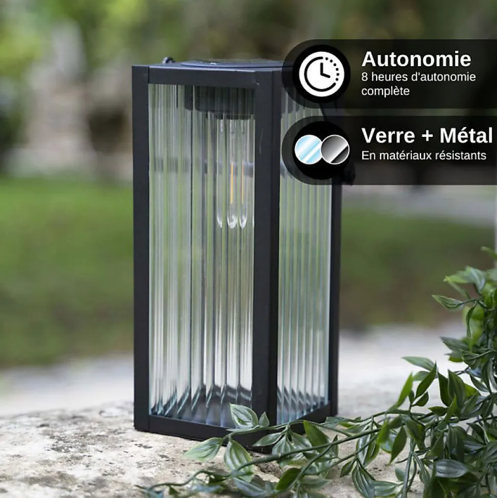 Xanlite – Lanterne Solaire Nomade 26cm IP44 – Verre ciselé & Métal – Noir – SOLARVC