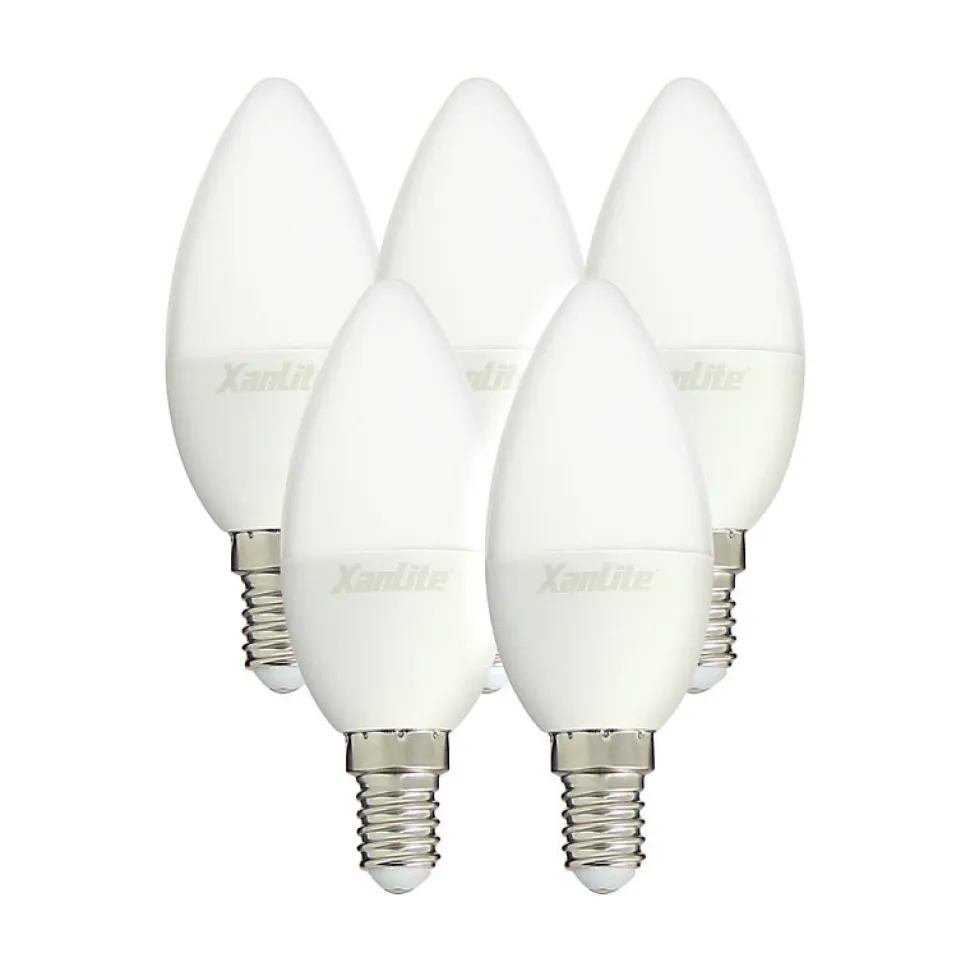 Xanlite – Lot x5 Ampoules LED flamme, culot E14, 5,5W cons. (40 W éq), lumière blanc chaud – PACK5EV470F