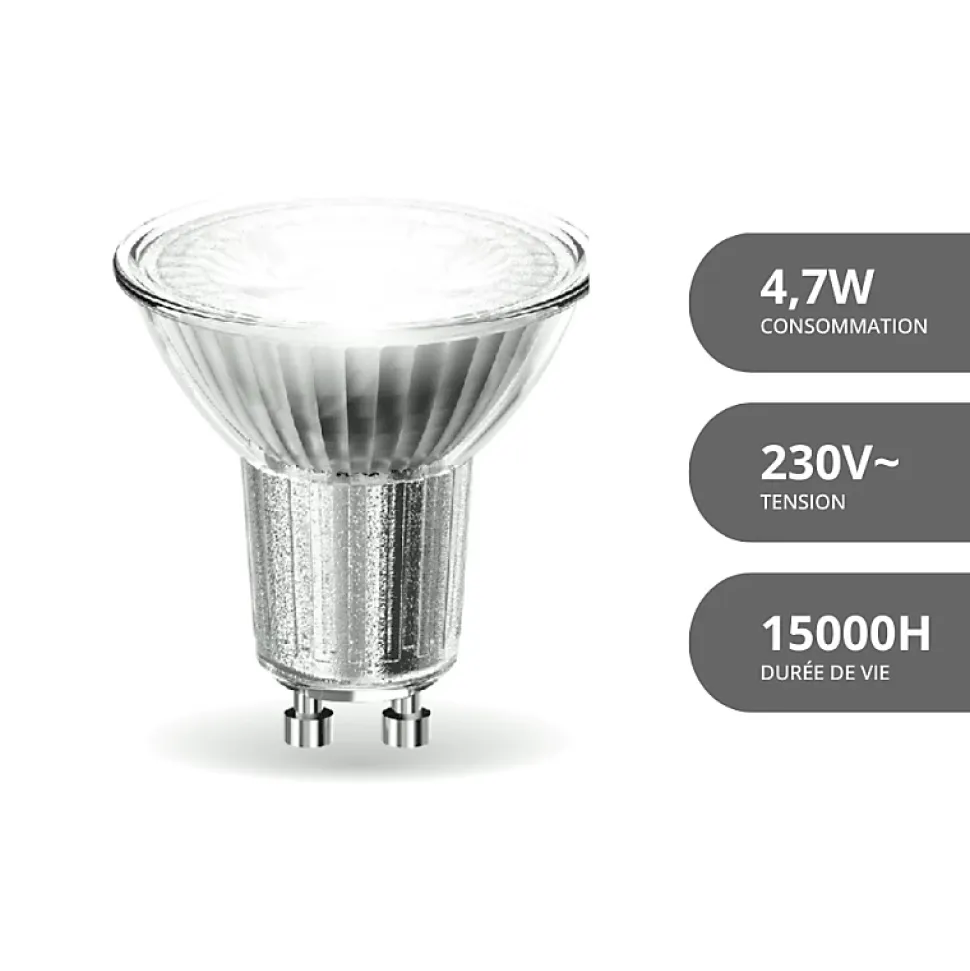 Xanlite – Lot x5 Ampoules LED spot, culot GU10, conso 4,8 W, eq. 50 W, blanc neutre – PACK5RCXG50SCW