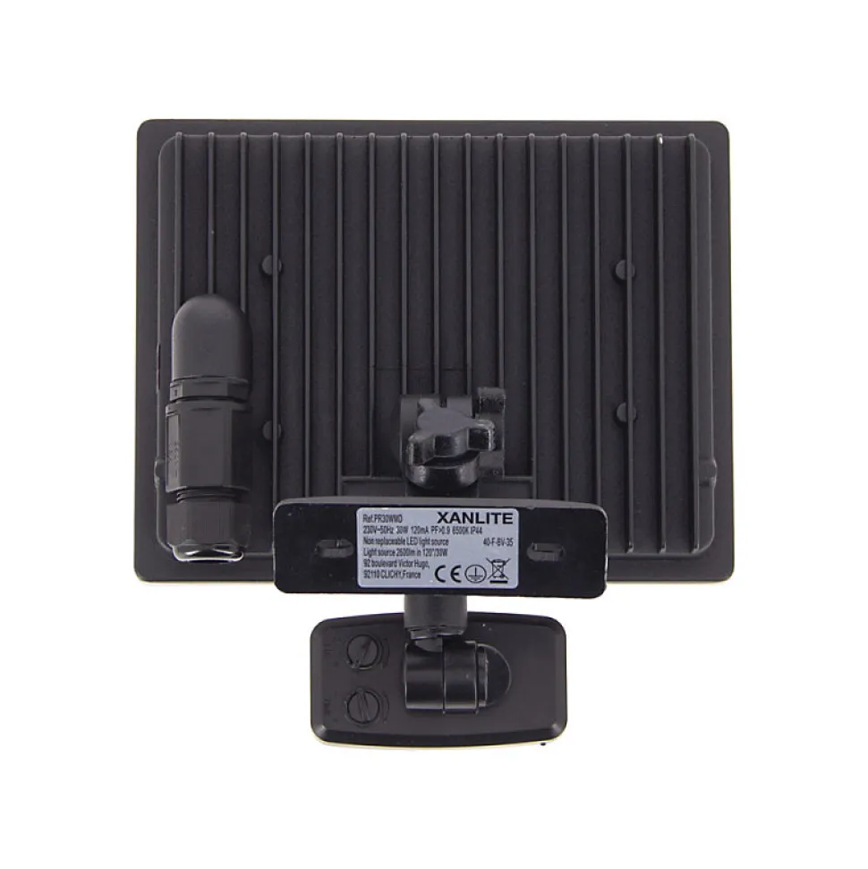 Xanlite – Projecteur mural noir LED IP44 avec détecteur de mouvement, 2600 Lumens, conso. 30 W, Blanc froid – PR30WMD
