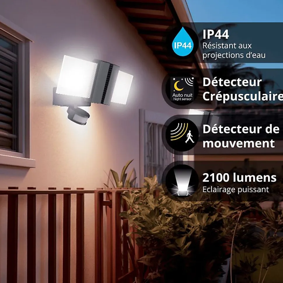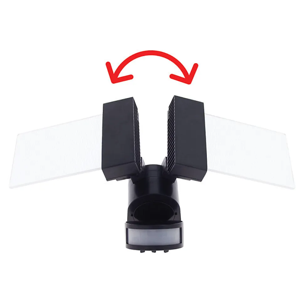 Xanlite – Projecteur mural PMMA 2 têtes 30W (2x15W), IP44, détecteur de mouvement, 2100 lumens, Blanc froid – PR30WM2TFLD