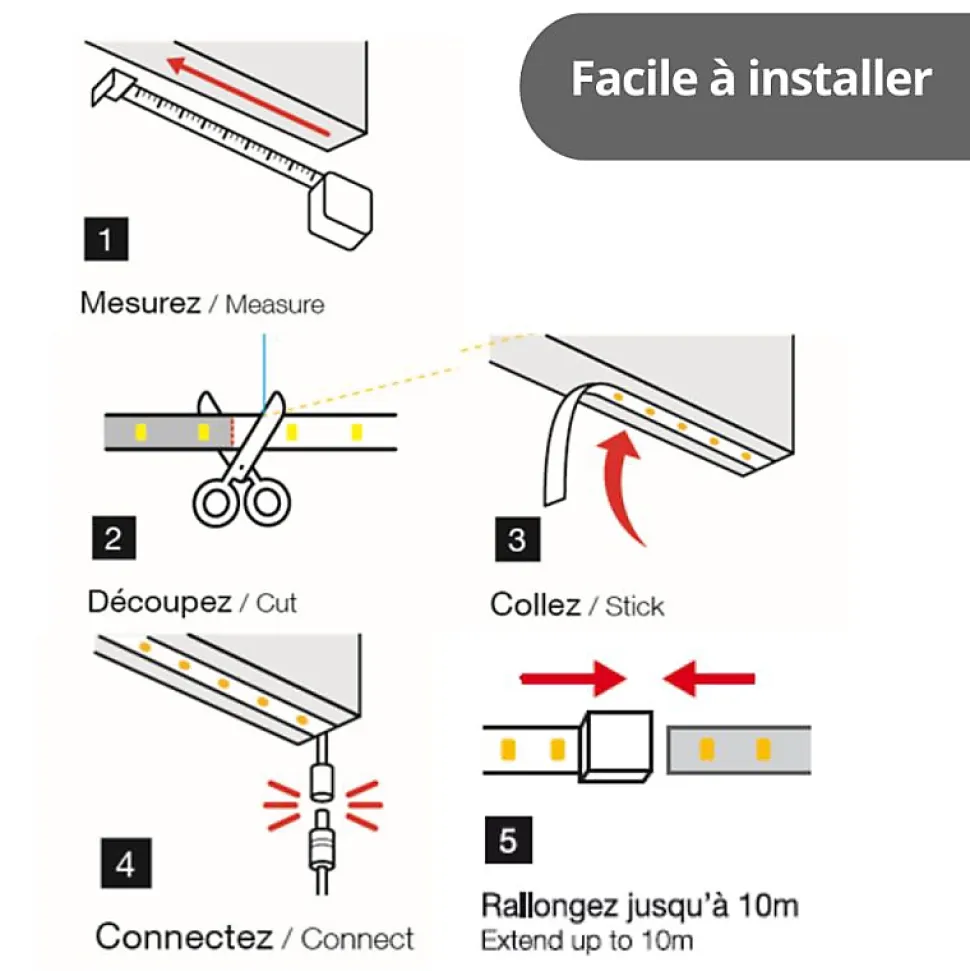 Xanlite – Ruban LED Extensible – 5m – Blanc chaud – LSAK5EX