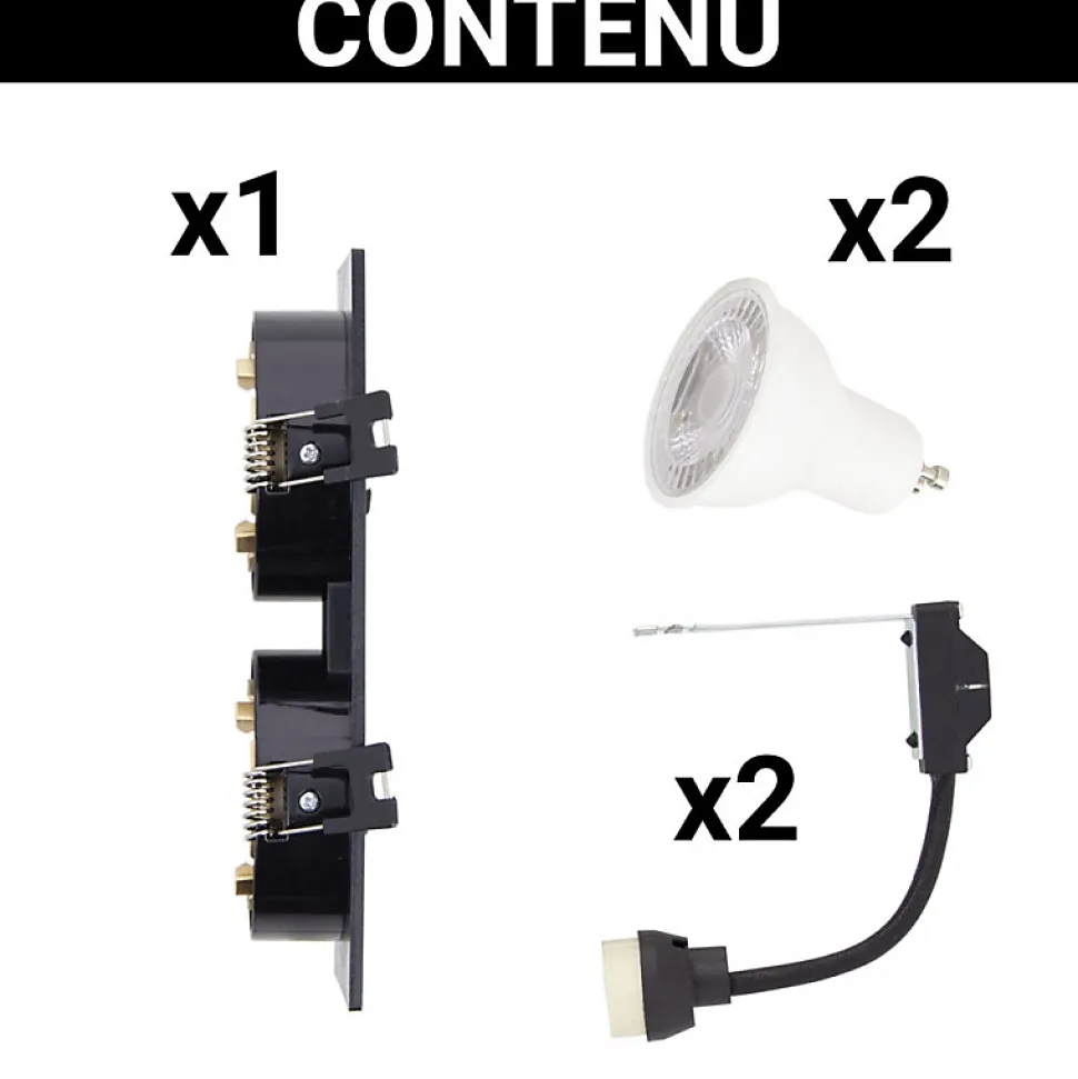 Xanlite – Spot 2 têtes GU10 50W 2700K Carré orientable Noir et or IP20 – SP502TCANO