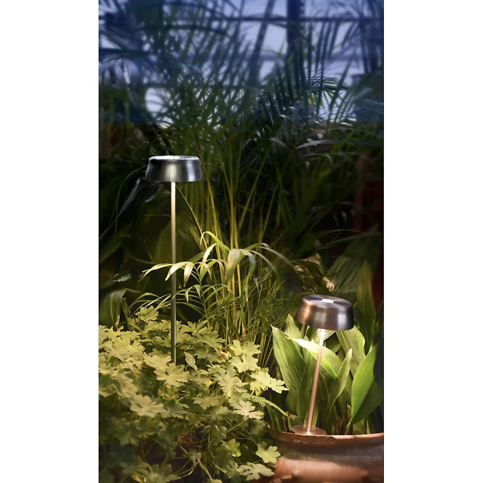 DONNÉES TECHNIQUESGRADATEUR TACTILE LED2200-2700-3000-4000K | IRC > 90250-275-296-338 ml | 3,2W | IP655 Vcc maximum 2ACorps en aluminium anodisé brossé ou peint et diffuseur prismatique en polycarbonate. Convient pour un usage externe (lampe IP65) et interne (lampe sur socle de chargement IP20).Résistance aux chocs (IK07) et au brouillard salin (1500h). Durée 8 – 58 h, en fonction du réglage du flux lumineux et des paramètres Wi-Fi. Temps de charge à 2A : 5 hBatterie au lithium rechargeable et remplaçable AVERTISSEMENTS Pour fonctionner, la lampe doit être connectée à un réseau Wi-Fi 2,4 GHz. Le micrologiciel de l’appareil peut être mis à jour à distance.Dans le colis vous trouverez : le piquet Wi-fi SISTER LIGHT, la base de chargement par contact et 2 tiges pour allonger le corps de votre lampe.Sister Light Wi-fi est une lampe design idéale pour une utilisation dans les espaces extérieurs, les tonnelles, les bars, les restaurants et les espaces de détente, elle est également largement utilisée dans les chambres, les salons et les bureaux professionnels. Lampe de table LED design également adaptée à une utilisation en extérieurDimension : Ø13,2xH17cm, socle 10cmx10cm