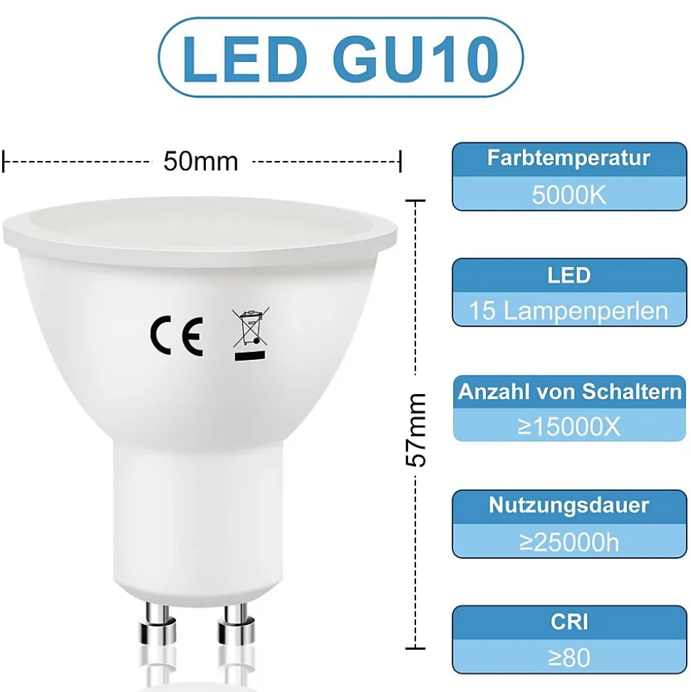 [économie d’énergie et longue durée de vie] : l’ ZMH Ampoule led gu10 6w remplace parfaitement les ZMH Ampoules à incandescence traditionnelles de 60w. Avec 15 puces led, vous économisez non seulement 90% sur votre facture d’électricité, mais vous bénéficiez également d’une longue durée de vie allant jusqu’à 25000 heures. C’est le meilleur choix si vous souhaitez remplacer vos ZMH Ampoules à incandescence.[sécurité et fiabilité] : l’enveloppe extérieure de haute qualité garantit que l’ ZMH Ampoule gu10 ne génère pas de chaleur excessive pendant l’utilisation. Elle est ainsi plus sûre et plus fiable.[bon rendu des couleurs] : 2 types d’ ZMH Ampoules assurent 2 températures de couleur, choisissez entre 3000k blanc chaud et 5000k blanc froid. Avec un angle de rayonnement de 110°, la lampe offre une lumière blanche et claire, ce qui vous permet de voir les objets dans leur vraie couleur. La source lumineuse est stable, sans danger pour les yeux et sans scintillement.[facile à installer] : avec un ac 230v, aucun transformateur supplémentaire n’est nécessaire. Il suffit de brancher l’ ZMH Ampoule gu10 sur le culot correspondant et elle est prête à l’emploi en 3 secondes. Elle peut être installée sans problème dans n’importe quelle pièce équipée d’un culot gu10.: