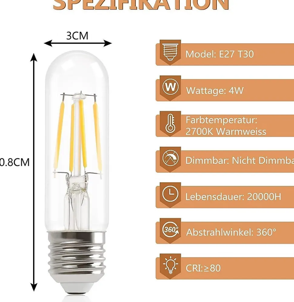 Haute efficacité énergétique, protection de l’environnement et économies d’argent : entrez dans la nouvelle ère des économies d’énergie ! Par rapport aux ZMH Ampoules halogènes traditionnelles, nos ZMH Ampoules led e14 edison vous permettent d’économiser jusqu’à 90% d’énergie !Lumière blanche chaude 2700k : le design transparent du boîtier améliore considérablement la transmission de la lumière des ZMH Ampoules à led e14 et permet d’obtenir un effet lumineux plus uniforme et plus doux. La teinte chaude de la lumière rend non seulement la pièce plus chaleureuse, mais évite aussi efficacement l’éblouissement et le scintillement, ce qui vous permet de profiter d’une expérience lumineuse agréable et de choyer vos yeux.Couleur brillante, présentation naturelle : de vraies couleurs, une belle présentation ! ZMH Ampoule led e14 avec super éclairage 4w, le rendu des couleurs va jusqu’à 80 ou plus, l’ ZMH Ampoule est inoffensive pour la peau et les yeux, exempte de rayons uv et infrarouges et d’éléments nocifs pour l’environnement comme le plomb et le mercure.E14 installation facile, avec leur petite taille de 30 mm x 108 mm, les ZMH Ampoules led e14 peuvent facilement être utilisées dans les camping-cars, les petites lampes de table, les veilleuses, les lampes suspendues, les plafonniers, les suspensions, etc. Leur design compact permet de les intégrer facilement dans différentes lampes pour un éclairage efficace.Service clientele : les ZMH Ampoules led à économie d’énergie vintage de gbly sont protégées par une garantie de qualité de 2 ans sans souci, profitez d’un éclairage led de haute qualité.nous souhaitons offrir à nos clients une expérience d’achat de haute qualité.