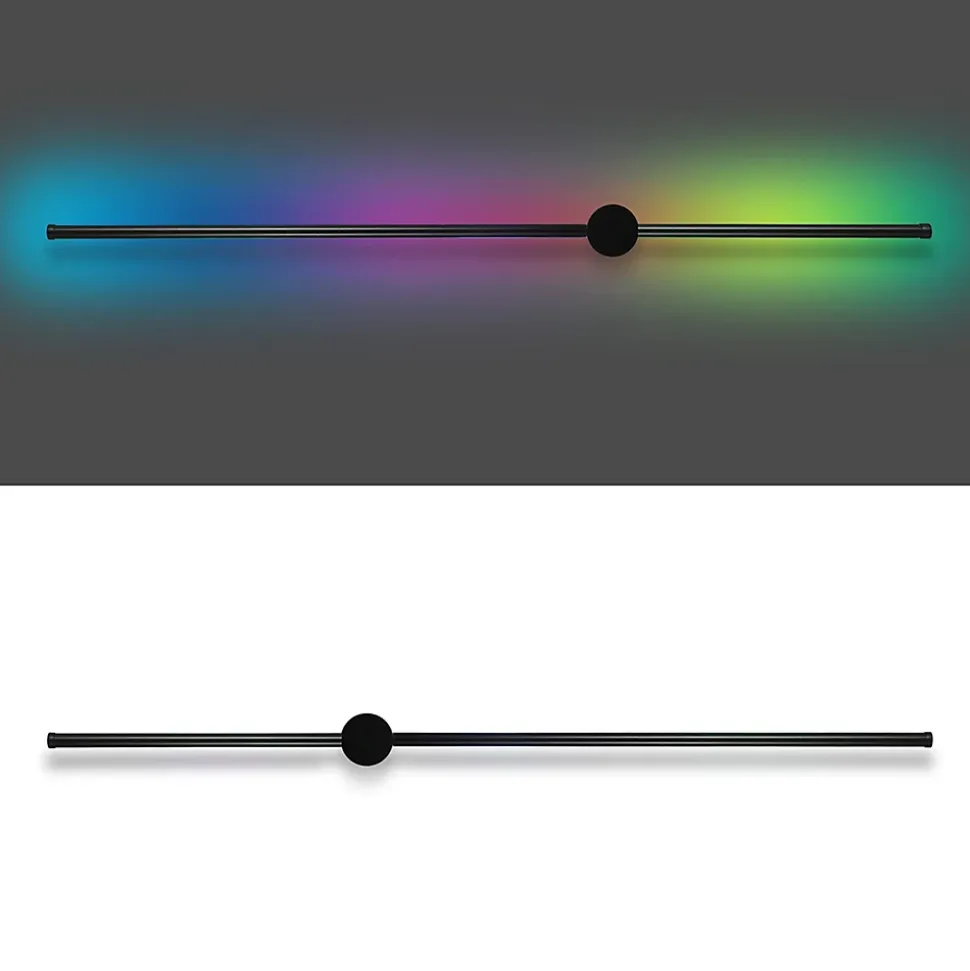 Le design : l’applique murale a un design fin et minimaliste qui convient bien au style d’aménagement moderne. Elle prend peu de place et s’intègre bien dans l’espace de vie. possibilité de rotation : l’applique murale est fabriquée en aluminium et peut être tournée de 90 degrés. Cela permet de régler la direction de la lumière selon les souhaits individuels. L’applique peut être placée aussi bien verticalement qu’horizontalement. led rgb : l’applique murale est dotée de puces led de haute qualité et offre une lumière uniforme et durable. La led intégrée diffuse la lumière sur le mur et crée un effet de couleur changeant qui entoure la lumière. détails techniques : la taille de la lampe est d’environ 100 x 6 x 10 cm. Elle a une puissance absorbée de 8 w et une luminosité de 640 lm. La température de couleur est rgb avec plus de 300 effets de lumière. L’alimentation électrique est assurée par un câble de 230 v. mode musical : en mode musical, les led rvb changent automatiquement de couleur. C’est idéal pour l’éclairage et la décoration de salles de jeux, salons, chambres à coucher, couloirs, cages d’escalier, balcons, bars, hôtels, etc.