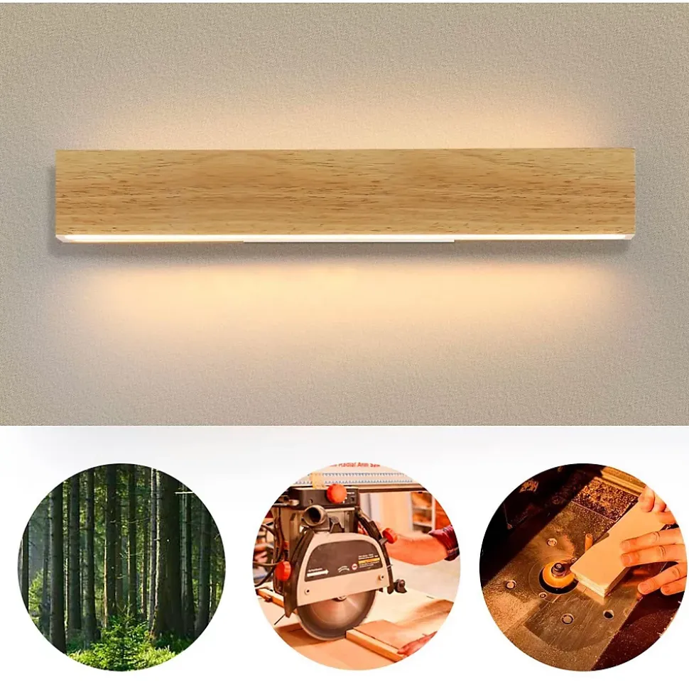 Design: l’applique murale en bois se distingue par son éclairage unique qui rayonne aussi bien vers le haut que vers le bas. La lumière est diffusée de manière douce et indirecte au-dessus et en dessous du luminaire, ce qui crée une atmosphère agréable et confortable sans effets éblouissants. details: cette exquise applique murale a une température de couleur de 3000 k et diffuse une lumière chaude et accueillante. Grâce à son indice de rendu des couleurs (irc) élevé et sans scintillement de plus de 85, vous pouvez profiter d’un effet de rendu des couleurs naturel impressionnant. Avec ses dimensions de 52 cm et une puissance de 11 watts, elle crée un équilibre parfait entre élégance et fonctionnalité. Veuillez noter que cette lampe n’est pas dimmable. utilisation: grâce à son design élégant et fin, l’applique murale est polyvalente. Elle s’intègre parfaitement dans les chambres à coucher, les salons, les couloirs, les entrées, les cages d’escalier et les halls d’entrée, et ajoute une touche de style à chaque pièce. matériaux & installation: cette applique murale est fabriquée en bois durable, ce qui est non seulement , mais garantit également une longue durée de vie. L’installation est très simple : fixez la barre de montage fournie au mur à l’aide des vis fournies, puis fixez l’applique sans effort. Tous les matériaux nécessaires au montage sont inclus dans la livraison, de sorte que vous pouvez immédiatement commencer à aménager votre intérieur.