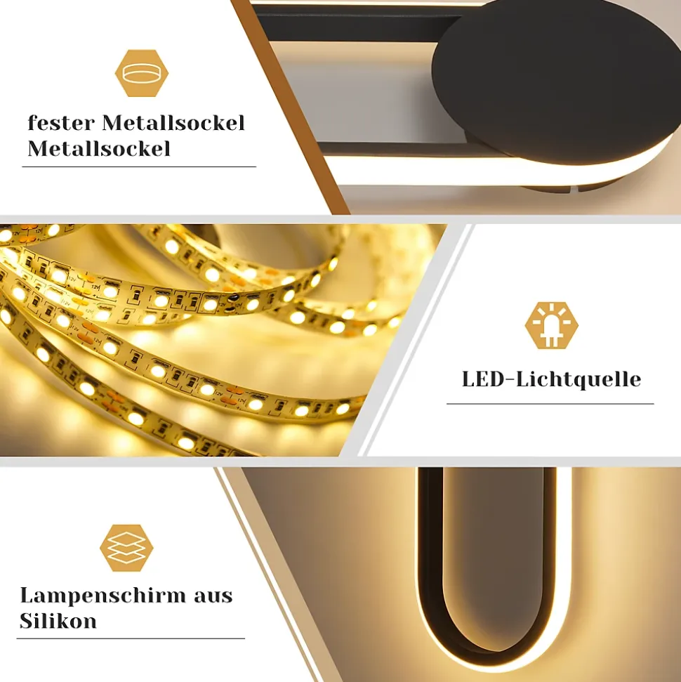 Esthétique moderne : cette applique murale d’intérieur, avec son motif ondulé unique, impressionne par ses lignes épurées et son élégance simple, reflétant l’approche stylistique du designer. Elle est la pièce maîtresse de tout salon. Son noir sobre et son allure décontractée s’intègrent parfaitement aux intérieurs modernes.applique murale blanc chaud : cette applique murale moderne est équipée de puces led de haute qualité délivrant un flux lumineux de 1 800 lm. Elle produit ainsi une lumière plus uniforme et durable, avec un éclairage plus intense. Avec un indice de rendu des couleurs (ra) supérieur à 80, elle reproduit fidèlement les couleurs d’origine des objets. Économe en énergie, elle offre une lumière vive et agréable, sans éblouissement, et est agréable pour les yeux.matériau de haute qualité : cette applique murale d’intérieur dorée est fabriquée en aluminium de haute qualité, avec une surface traitée par pulvérisation et polissage à haute température. Elle est ainsi résistante à la rouille, durable et facile à nettoyer. l’abat-jour en silicone de haute qualité offre une transmission lumineuse douce et agréable et est également incassable.détails techniques : dimensions de la lampe : 41,5 x 14 x 4 cm ; consommation : 12 w ; température de couleur : 3000 k blanc chaud ; tension : 230 v ; type de source lumineuse : led ; intensité variable : non ; portée d’éclairage : 8-12 m2. Câblée et montée en surface pour une installation facile.utilisations polyvalentes : cette applique murale led peut être montée verticalement ou horizontalement et est idéale pour l’éclairage intérieur. Elle est idéale pour éclairer et décorer des pièces telles que : salon, chambre, couloir, cuisine, cage d’escalier, balcon, chambre d’enfant, bar et hôtel.