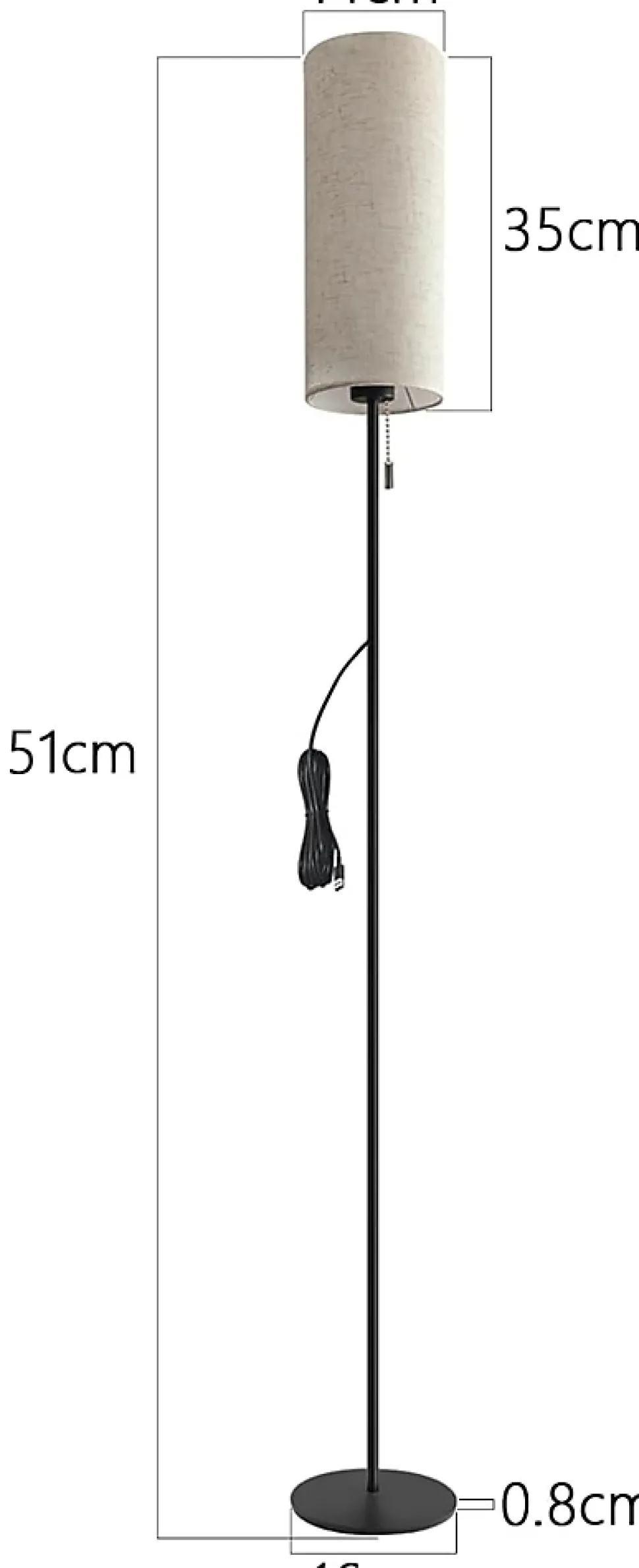 - Design élégant avec cadre métallique noir et abat-jour cylindrique en tissu beige.
