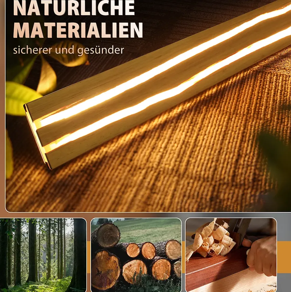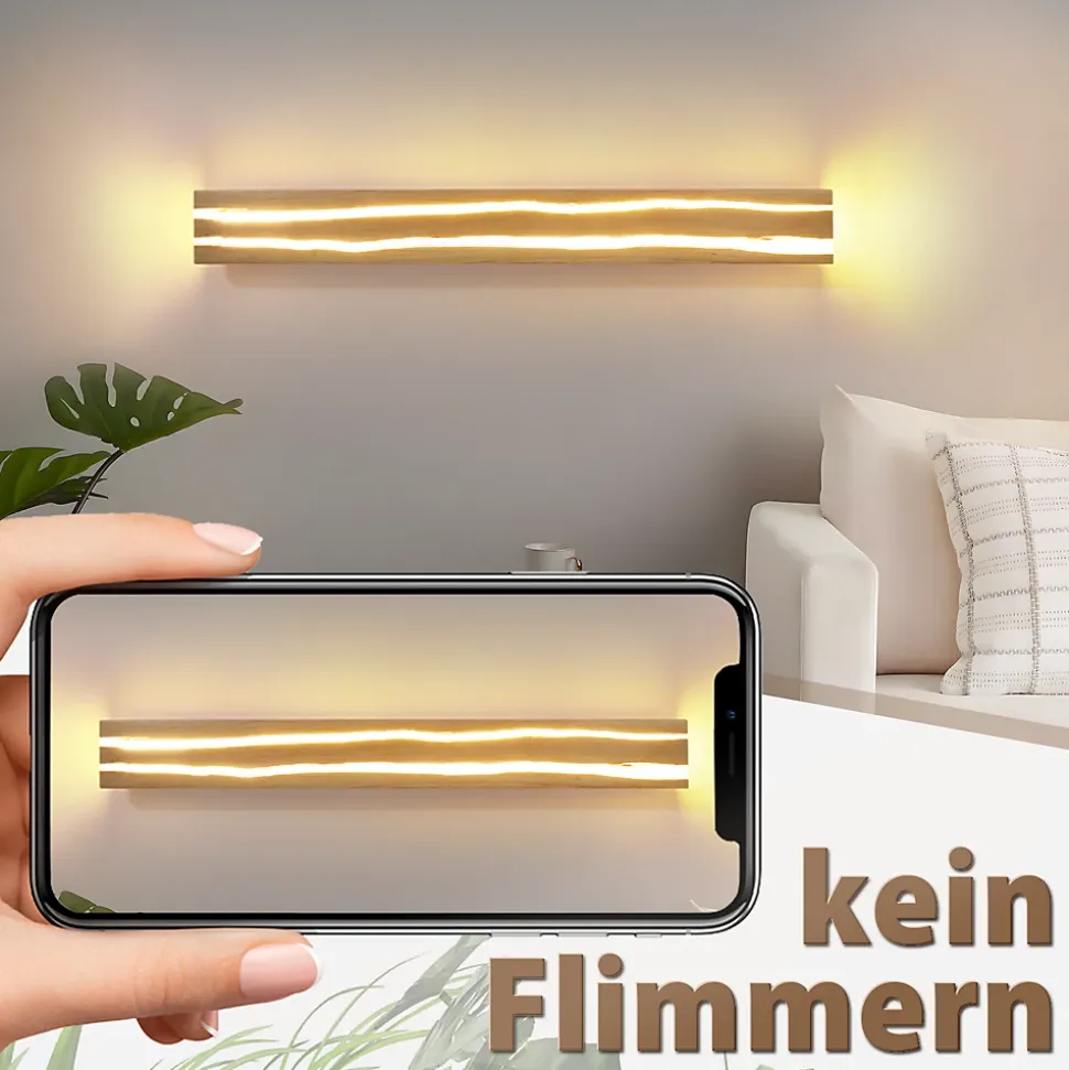 Applique murale LED en bois : Le bois est un matériau renouvelable, et sa production et sa transformation ont un impact environnemental moindre que celles d’autres matériaux non renouvelables (comme le plastique, le métal, etc.). Choisir une applique murale LED en bois contribue à réduire l’impact environnemental. L’alliance du bois et d’éléments naturels confère à l’intérieur une ambiance originale et authentique, rendant la pièce plus chaleureuse et intime.Unicité et savoir-faire : Les appliques murales en bois craquelé présentent des textures et des formes uniques. Chaque craquelure est une œuvre d’art à part entière, ajoutant des effets visuels uniques et une atmosphère artistique à la pièce. En tant que luminaire décoratif, elles remplissent également leur fonction d’éclairage classique, fournissant une lumière adaptée et créant de magnifiques jeux d’ombre et de lumière grâce au filtre des craquelures.Caractéristiques techniques : Matériaux : Bois et métal ; Longueur : 80 cm ; Largeur : 30 cm ; Tension : 230 V ; Consommation : 13 W ; Température de couleur : Blanc chaud 3000 K. Indice de protection : IP20Décoration lumineuse : Cette applique murale en bois est idéale pour éclairer salons, couloirs, chambres, salles à manger, etc. Le veinage du bois lui confère un style unique ; son design original la distingue du mur et en fait un bel élément décoratif.Installation facile : Nos appliques murales LED sont fournies avec des instructions détaillées qui vous guident à chaque étape de l’installation, pour une mise en place rapide et facile. Cette applique est également un cadeau idéal, parfait pour offrir à la famille, aux amis ou aux collègues à l’occasion d’une pendaison de crémaillère, d’un mariage, de Noël ou de toute autre fête.