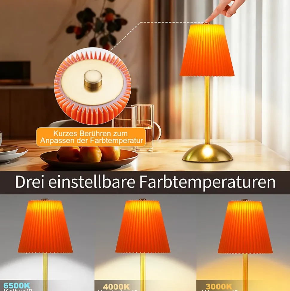 design moderne : cette lampe de table arbore un design moderne et minimaliste, avec un abat-jour élégant en tissu texturé qui s’intègre harmonieusement à différents styles d’intérieur. L’abat-jour est disponible en cinq coloris : noir, vert, blanc, gris-bleu et orange-rouge. Que vous souhaitiez créer une ambiance apaisante au bureau, un salon chaleureux ou égayer une chambre d’enfant dynamique, cette lampe de chevet répondra à vos besoins esthétiques.commande tactile : cette lampe de table sans fil est dotée d’un interrupteur tactile innovant. Une simple pression suffit pour l’allumer, éliminant ainsi le besoin d’interrupteurs traditionnels encombrants. Une pression prolongée permet un réglage progressif de l’intensité lumineuse, d’une lumière d’ambiance douce à une lumière vive, pour s’adapter à tous vos besoins.longue autonomie et charge rapide : cette lampe de table rechargeable est équipée d’une puissante batterie de 2000 mah (3,7 v) offrant jusqu’à 7 à 8 heures d’éclairage après une charge complète, répondant ainsi facilement aux besoins d’une utilisation quotidienne. Qu’elle soit posée sur votre bureau ou votre table de chevet, une recharge fréquente n’est pas nécessaire. Grâce à sa conception économe en énergie (2 w), la lampe se recharge complètement en seulement 3 à 4 heures.polyvalente et portable : cette lampe de table mesure seulement 11,5 x 11,5 x 30 cm. Son format compact la rend peu encombrante et facile à transporter et à ranger. Elle convient à de nombreux espaces, tels que les petits bureaux, les tables de chevet, les chambres, les salons, les bureaux, les entrées, les salles de lecture, les chambres d’enfants, les salles à manger, les bibliothèques, les hôtels, les bars et les locations de vacances.résistante et fiable : le corps de la lampe est fabriqué en fer robuste et durable, tandis que l’abat-jour est confectionné à partir d’une combinaison d’acrylique et de tissu.