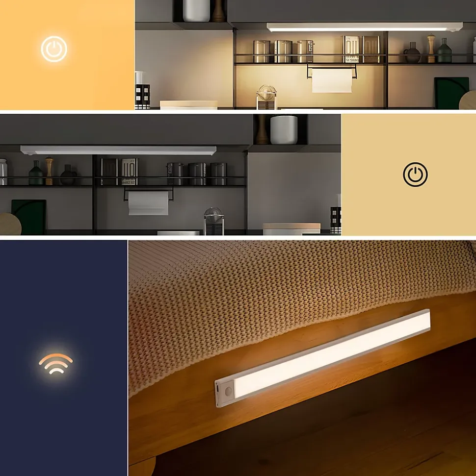 3 modes de fonctionnement:nos éclairages led sous armoire offrent 3 modes différents:(1) toujours allumés;(2) toujours éteint;(3) mode de détection nocturne.Dans un environnement sombre,cette lampe d’armoire détecte automatiquement les mouvements dans un rayon de 5 mètres et allume automatiquement la lumière.S’éteint automatiquement après 25 secondes si aucun mouvement n’est détecté pour économiser de l’énergie 3 températures de couleur et luminosité réglable:l’éclairage sous armoire dispose de 3 températures de couleur au choix,blanc chaud 3000k pour la veilleuse,blanc neutre 4000k pour la lecture et blanc froid 6500k pour la cuisine (une simple pression pour changer),et offre une luminosité réglable en continu de 10% à 100% (réglage par appui long) pour répondre à vos différents besoins d’éclairage dans différents scénarios rechargeable et longue durée de vie:la lampe de placard à détecteur de mouvement est livrée avec une batterie rechargeable de 1500 mah*2 et un câble de chargement usb,qui peut être complètement chargée en seulement 5 à 7 heures et utilisée pendant au moins 8 à 10 heures à 100% de luminosité en mode on,et plus longtemps dans d’autres modes et luminosité,pas besoin de charger fréquemment conception ultra-mince et largement utilisé :l’éclairage d’armoire à led ne mesure que 1cm d’épaisseur et peut s’intégrer dans n’importe quelle pièce sans affecter le style de vos meubles.Il convient à la cuisine,à la chambre,au placard, à l’armoire, sous l’armoire,aux bureaux,aux tiroirs,à la bibliothèque,au grenier, aux tables de chevet,aux vitrines,à la cage d’escalier,aux foyers. installation facile:les bandes auto-adhésives à l’arrière de la lumière led sous l’armoire de cuisine peuvent être facilement fixées sur n’importe quelle surface propre et lisse,très facile à installer.Si vous avez des questions sur notre éclairage de cuisine rechargeable sous armoire,n’hésitez pas à nous contacter.