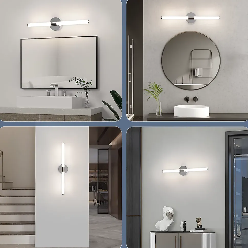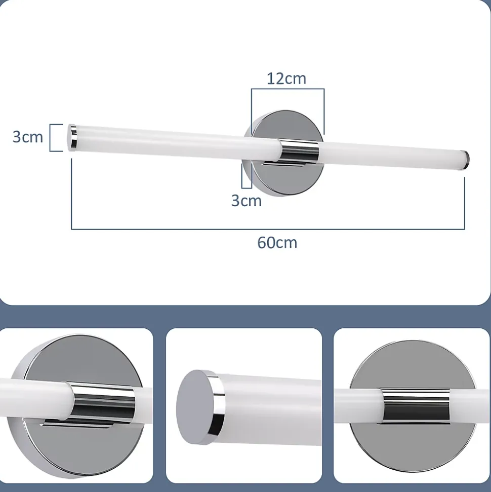 Étanche ip44. Ce luminaire pour miroir de salle de bain est fabriqué en pc et ses bornes de connexion sont équipées de couvercles d’étanchéité pour garantir la sécurité du circuit et empêcher la pénétration de corps étrangers. Cela permet d’éviter les dommages causés par les éclaboussures d’eau, vous permettant ainsi d’utiliser le luminaire en toute sécurité. Par conséquent, les luminaires led pour salle de bain sont particulièrement adaptés à l’éclairage des couloirs, des salons et des salles de bain. Installation facile. Ce luminaire de salle de bain est très pratique. Livré avec deux supports pré-percés et amovibles et tout le matériel de montage nécessaire pour l’utiliser avec différentes lampes de votre maison. Que vous installiez ce luminaire pour miroir comme lampe fixe sur une armoire, un mur ou un miroir (épaisseur ≤ 7 mm), il remplira votre maison de lumière. Luminaire led pour salle de bain avec une lumière agréable : le luminaire pour salle de bain avec éclairage émet une lumière blanche neutre de 4 000 k, sans teinte jaune ni bleue. Les lumières douces et lumineuses diffusent une belle lueur. Idéal pour être placé au-dessus d’un miroir. La couleur blanche neutre de la lumière garantit un éclairage optimal et une protection des yeux pour un confort optimal lors du maquillage, du rasage et des soins corporels quotidiens. Sûr et fiable : l’applique murale de salle de bain 8 w protège la led grâce à un abat-jour en polycarbonate. Robuste et résistante, elle ne rouille pas facilement. L’applique pour miroir se branche directement sur le cordon d’alimentation et fonctionne avec un interrupteur classique, très pratique et sûr. Cette applique murale led a une durée de vie de 20 000 heures. Elle est idéale pour éclairer un miroir à la maison, à l’hôtel, au bureau ou dans un espace de travail. Nombreuses applications : son design épuré et sa finition chromée miroir confèrent à cette applique led à économie d’énergie un aspect moderne et de haute qualité.
