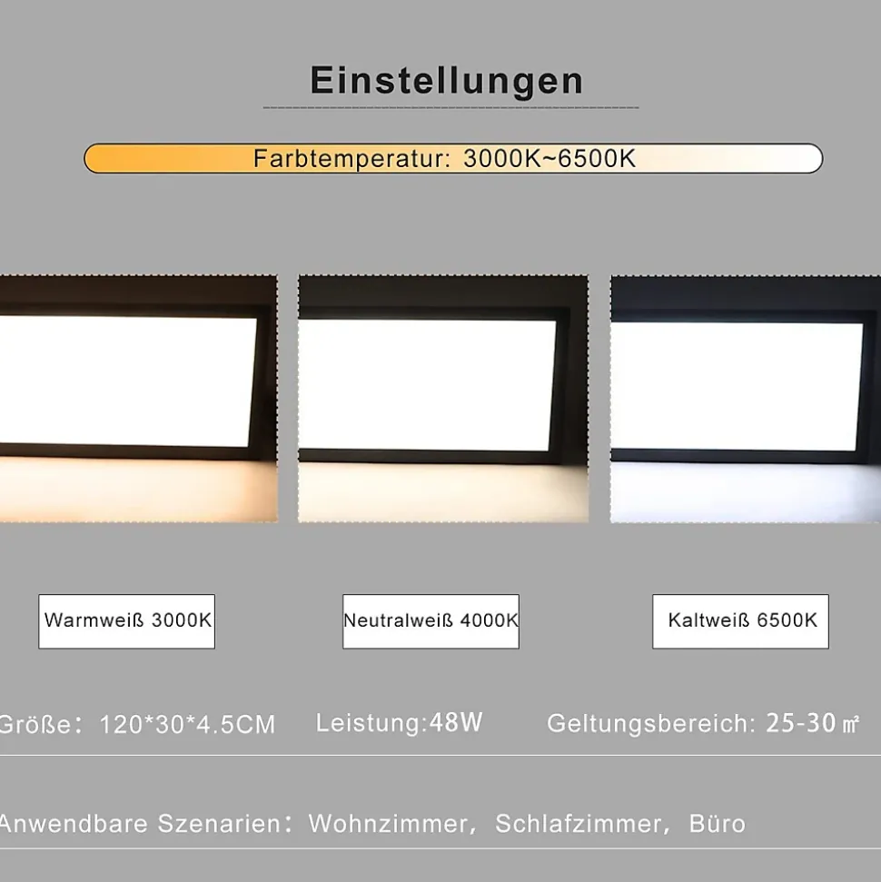 [matériau] : le plafonnier led rectangulaire avec un cadre en aluminium noir et un châssis en fer diffuse une lumière large et agréable dans la pièce. Grâce à sa construction moderne, le luminaire donne l’impression de flotter au plafond.[température de couleur variable & réglable] : le panneau led est réglable en intensité. La température de couleur peut varier de 3000k à 6500k. Luminosité réglable de 5% à 100%. Avec fonction mémoire : enregistrement automatique du dernier mode d’allumage. la température de couleur peut également être commutée rapidement par un interrupteur mural.[économie d’énergie] : avec une puissance lumineuse de 3840 lm, le panneau led cbjktx remplace une lampe à incandescence de 200w. Ainsi, le luminaire suspendu à led peut économiser plus d’énergie et réduire les coûts d’électricité avec une faible consommation d’énergie de 48w. Il dispose d’une longue durée de vie de 30000 heures, ce qui réduit la fréquence de remplacement des lampes.[design ultra-plat] : le boîtier du panneau lumineux est ultra-mince et ne mesure que 1cm. Nous offrons une garantie de 2 ans sur notre panneau led. Notre service clientèle répondra à vos messages dans les 12 heures pour vous aider à résoudre vos éventuels problèmes.[application large] : grâce à sa conception très plate et à son éclairage de grande surface, ce plafonnier convient parfaitement aux bureaux, mais aussi aux salons, cuisines, chambres à coucher, grands magasins, salles à manger, salles de réunion, couloirs, escaliers, vérandas, garages, etc.: