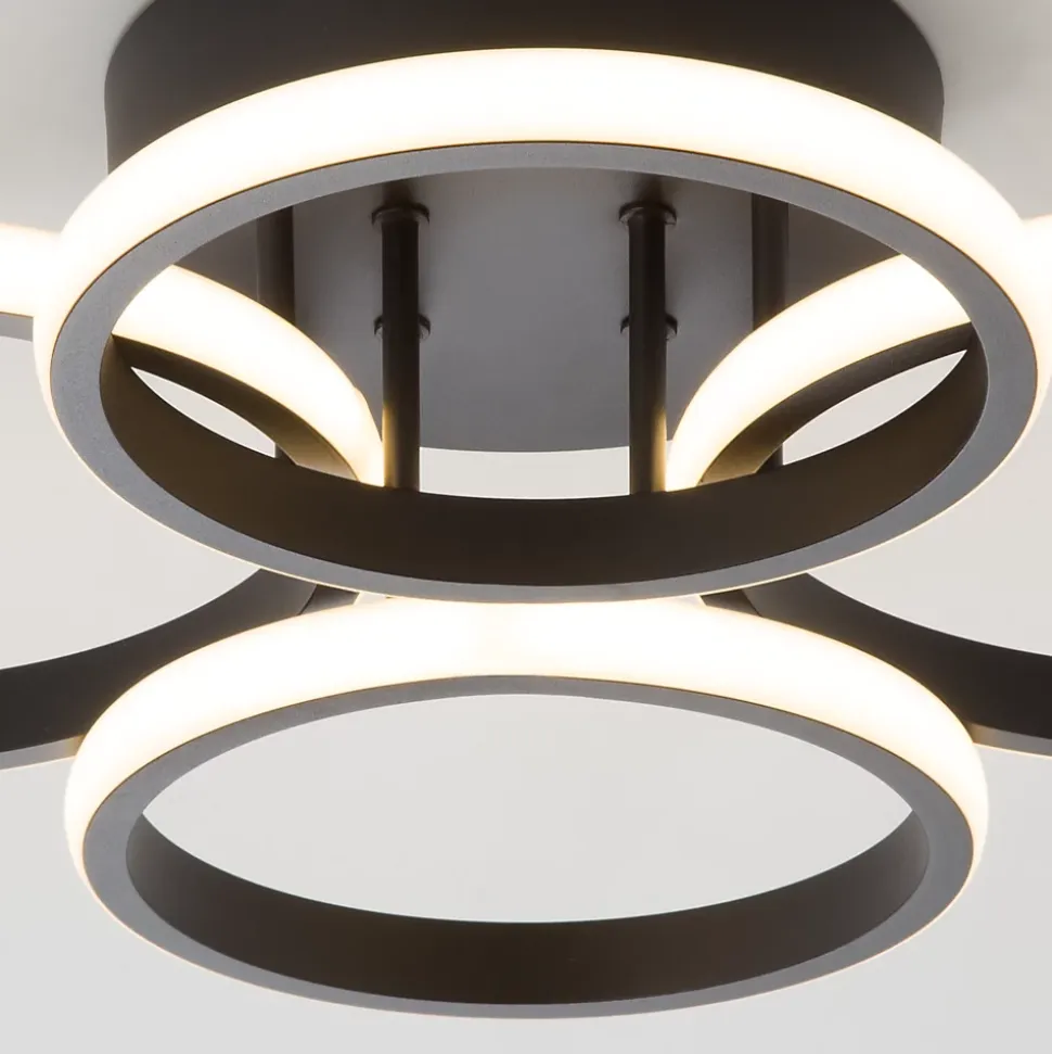 design moderne et matériaux de haute qualité : ce plafonnier à 4 anneaux combine l’aluminium, le fer et le silicone pour créer un design élégant et durable qui s’intègre parfaitement dans les salons et les chambres modernes.technologie led économe en énergie : avec une puissance led de 48 w, ce plafonnier offre un éclairage lumineux et économe en énergie qui illumine vos pièces de manière optimale.installation facile et dimensions compactes : avec des dimensions de 54,6 x 42,6 x 11,8 cm (lumière) et 28 x 28 x 10 cm (emballage), ce plafonnier est facile à installer et s’intègre même dans les petits espaces.dimmable et télécommande : la lampe est dimmable et est livrée avec une télécommande pratique pour que vous puissiez facilement régler la luminosité selon vos besoins.applications polyvalentes : que ce soit dans le salon, la chambre ou d’autres pièces, ce plafonnier moderne s’intègre parfaitement dans différents styles d’intérieur et crée une atmosphère chaleureuse.