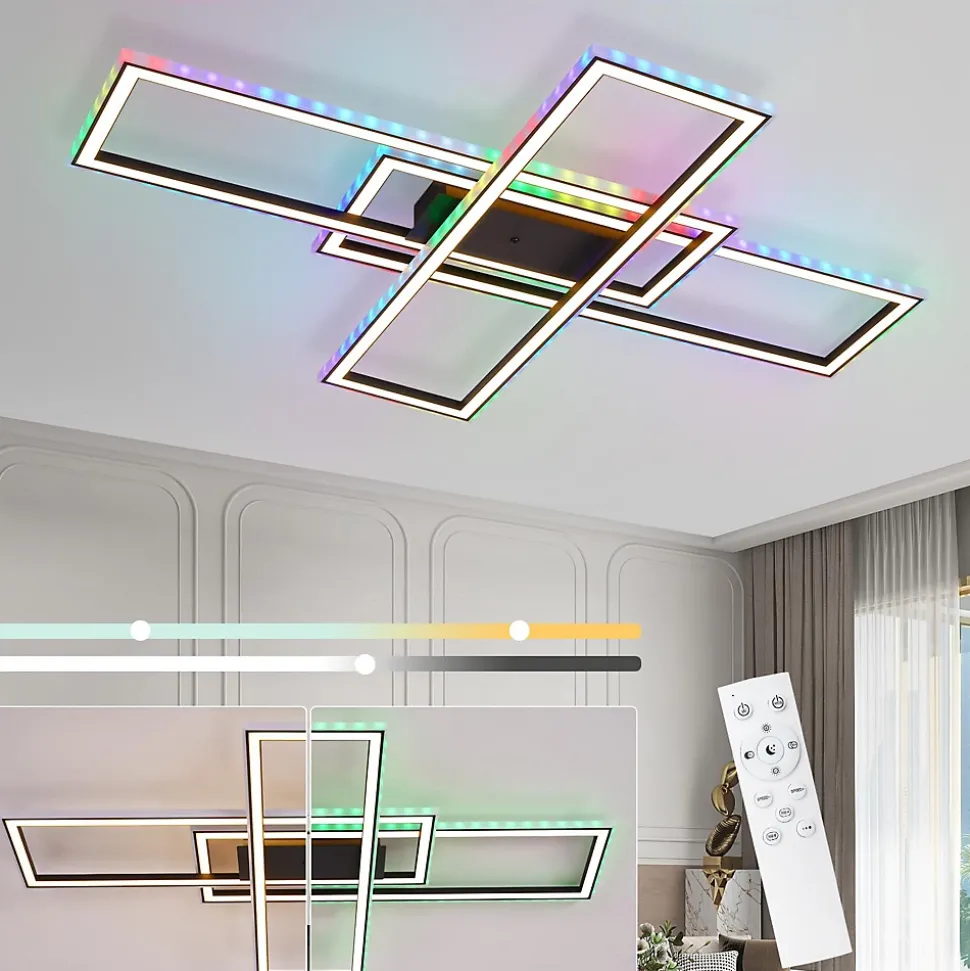 [plafonnier rvb de haute qualité en métal + gradation cct] ce plafonnier rvb de haute qualité de 50w au design géométrique vous permet d’éclairer votre maison avec style. Ce plafonnier led avec fonction télécommande utilise un matériau de puce led avancé qui est économe en énergie et a une durée de vie allant jusqu’à 25 000 heures.[cct+variation progressive] le plafonnier led est livré avec une télécommande pratique qui vous permet de choisir facilement entre trois températures de couleur différentes(3000k-6000k) et une fonction de variation progressive (10%-100%).[mode rgb diy] l’anneau lumineux rgb de ce plafonnier à led à intensité variable vous permet de choisir différents modes d’éclairage. Vous pouvez allumer les 13 couleurs du changement de couleur rgb individuellement, ou vous pouvez allumer le mode cycle du rgb et contrôler la vitesse du cycle de l’anneau lumineux, arrêter ou démarrer, accélérer ou ralentir, vous pouvez utiliser la télécommande pour créer une atmosphère romantique ou un éclairage de fête, ce plafonnier à led offre tout.[10% mode nuit] la lampe de chambre à coucher adapte la luminosité à l’endroit le plus sombre, pas d’éblouissement, pas de scintillement, vous offre sécurité et confort dans l’obscurité. la lampe de salon au plafond dispose également d’une fonction pratique de mémorisation, de sorte que vos réglages préférés sont conservés. Ce design moderne est parfait pour différentes occasions comme la chambre à coucher, le salon, la salle à manger, la cuisine, le balcon, le couloir et bien d’autres. [instructions d’installation détaillées] ne vous inquiétez pas pour le service client, vous bénéficiez d’une garantie de 2 ans sans souci. L’installation de cette lampe de cuisine est simple et facile. Si vous avez des questions ou des problèmes, notre service clientèle en ligne est toujours à votre disposition.: